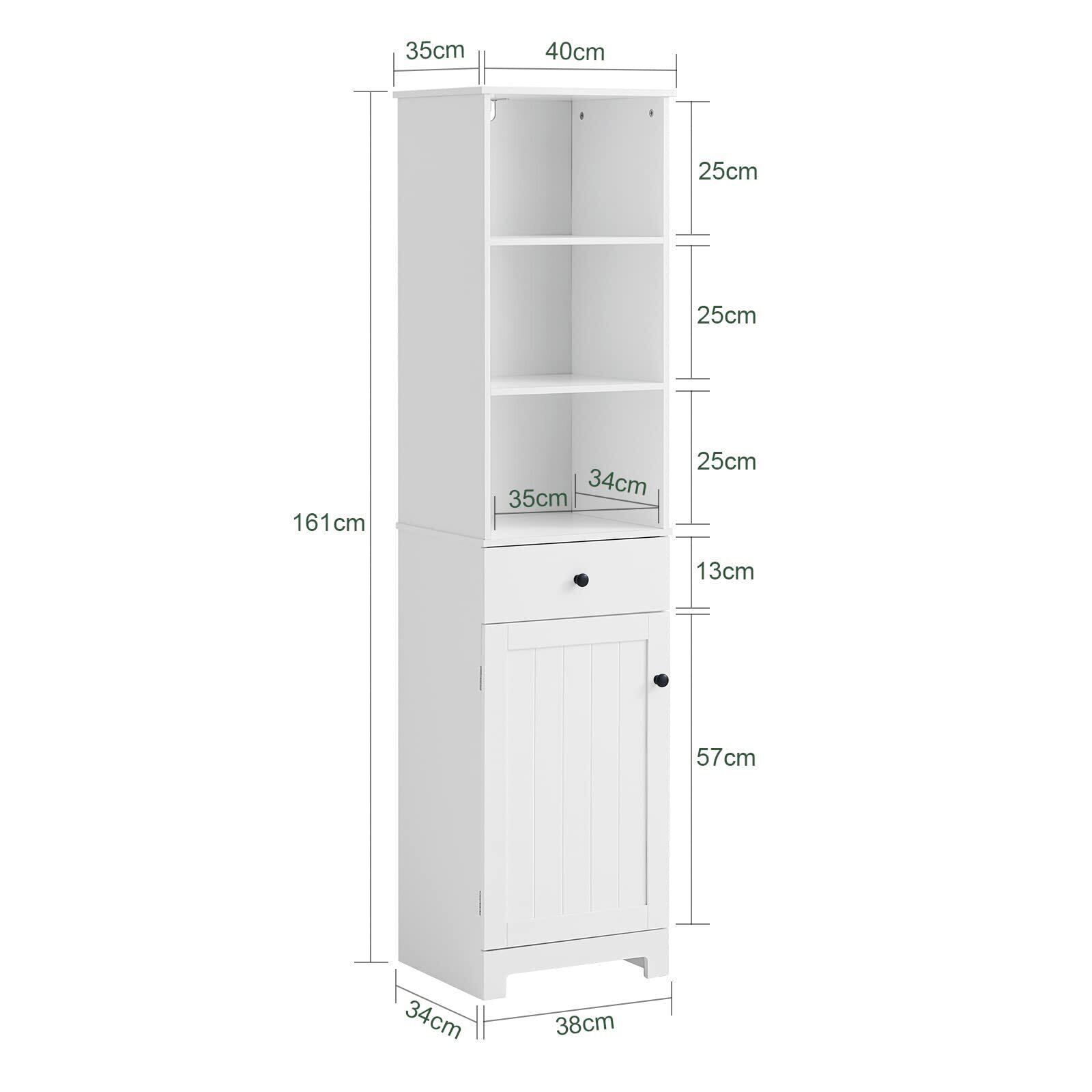 SoBuy 隙間収納 ランドリーラック 食器棚 洗面所 収納 キャビネット 隙間ラック 幅40*奥行35*高さ161cm 引き出し付き 北欧風 大容量 ランドリーチェスト ランドリー収納 収納棚 洗面所キャビネット すきま収納 サニタリーラック(BZR17-W)