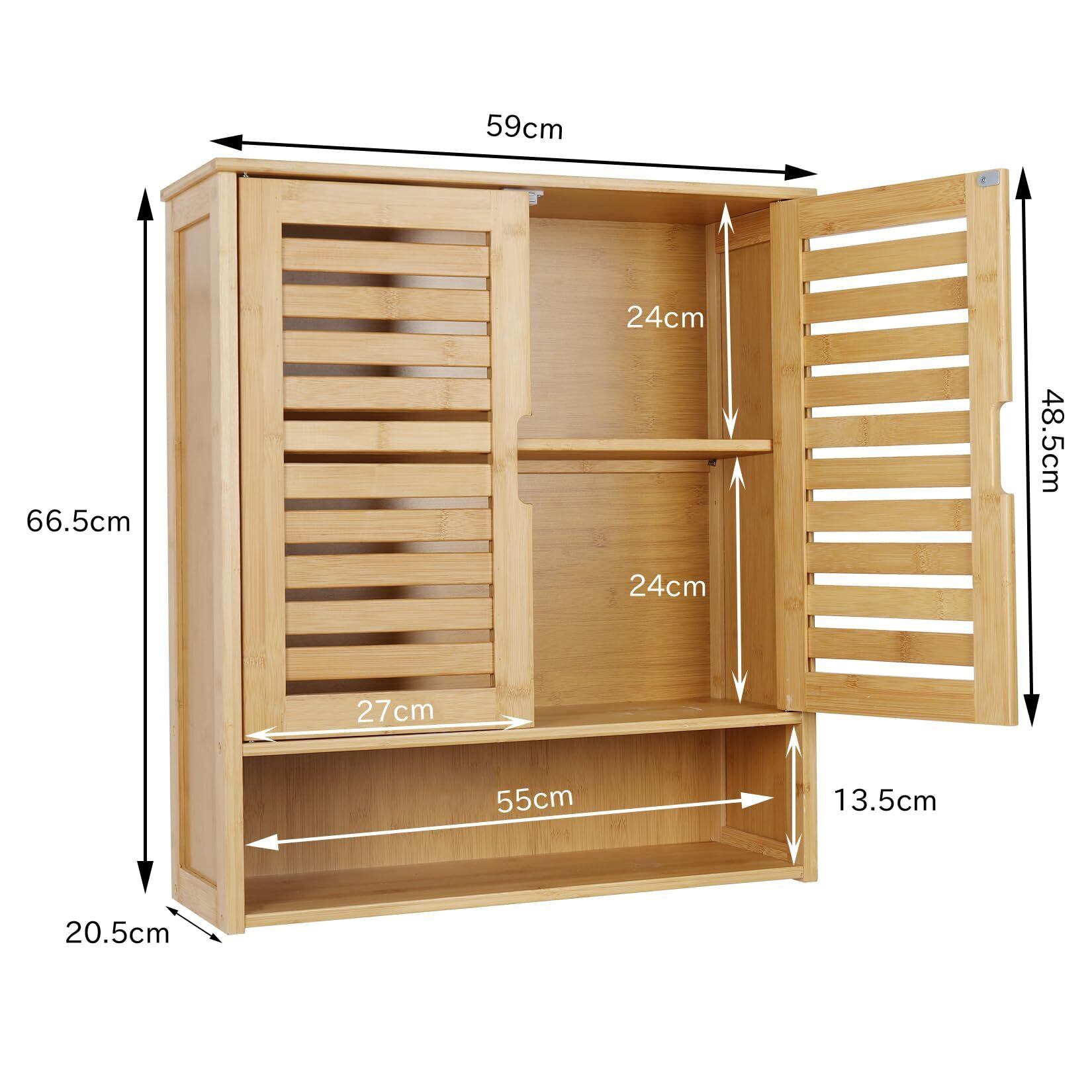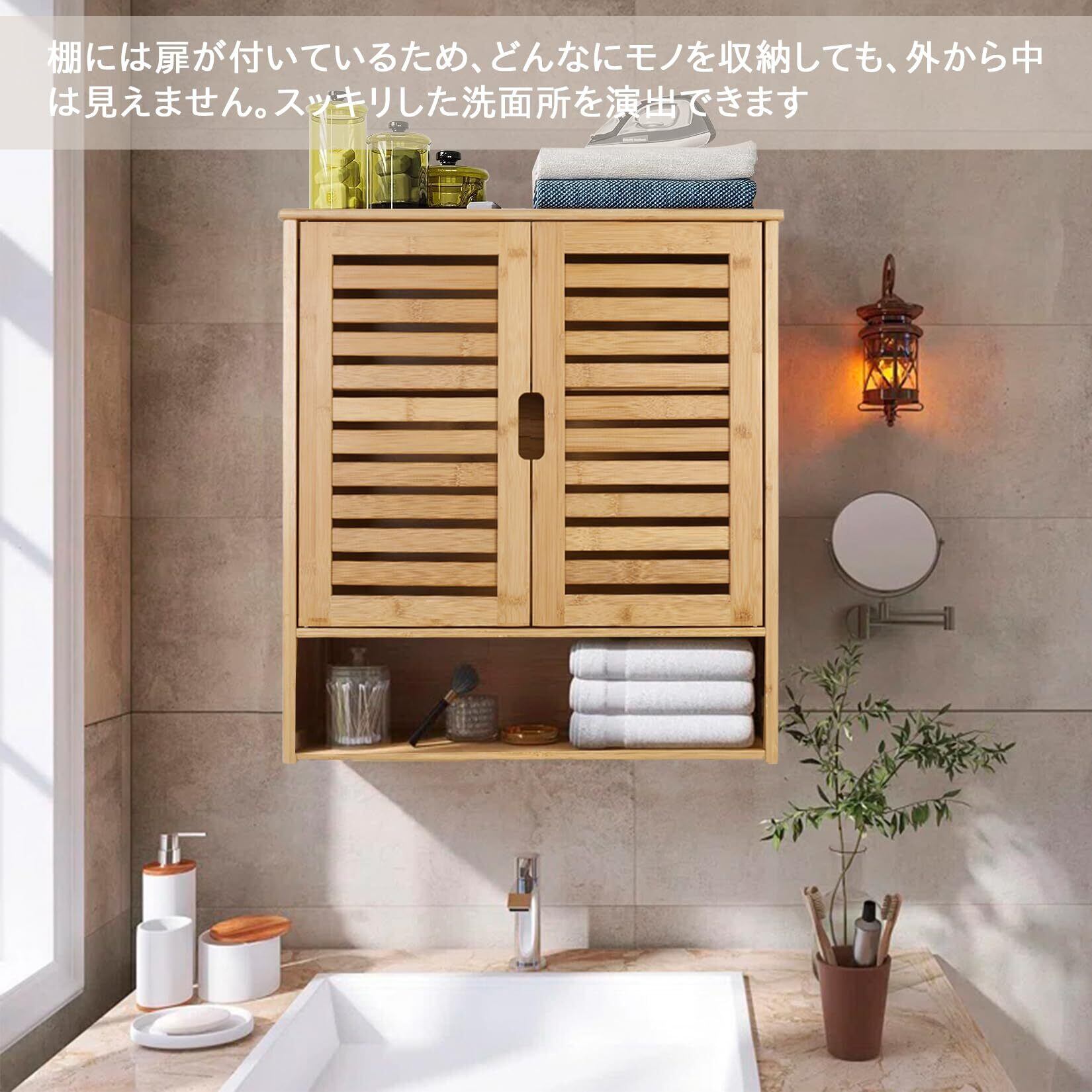 UNHO ウォールシェルフ 扉付き 吊り戸棚 キッチン 壁面収納 棚 天然木 大容量 飾り棚 ウォールキャビネット 可動棚 おしゃれ 洗面所 トイレ