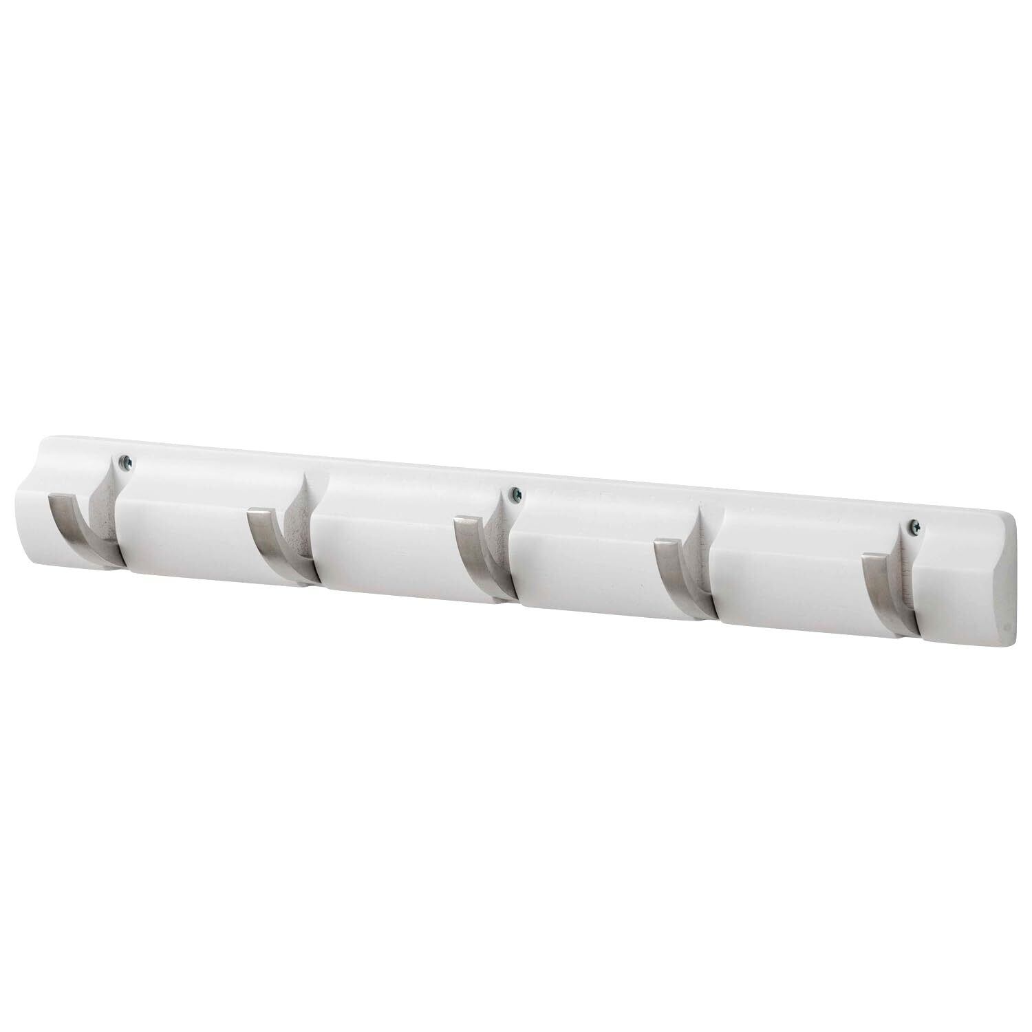 ドウシシャ ウォールハンガー 壁掛けフック 5連 開閉式フック 壁を傷つけない 賃貸OK 白 ホワイト おしゃれ 木製 取付ガイド付きで簡単設置 石膏ボード 穴が目立たない ピン留め ネジ留め 強力 壁面取付金具 幅57 AWH-5WH 意匠登録済