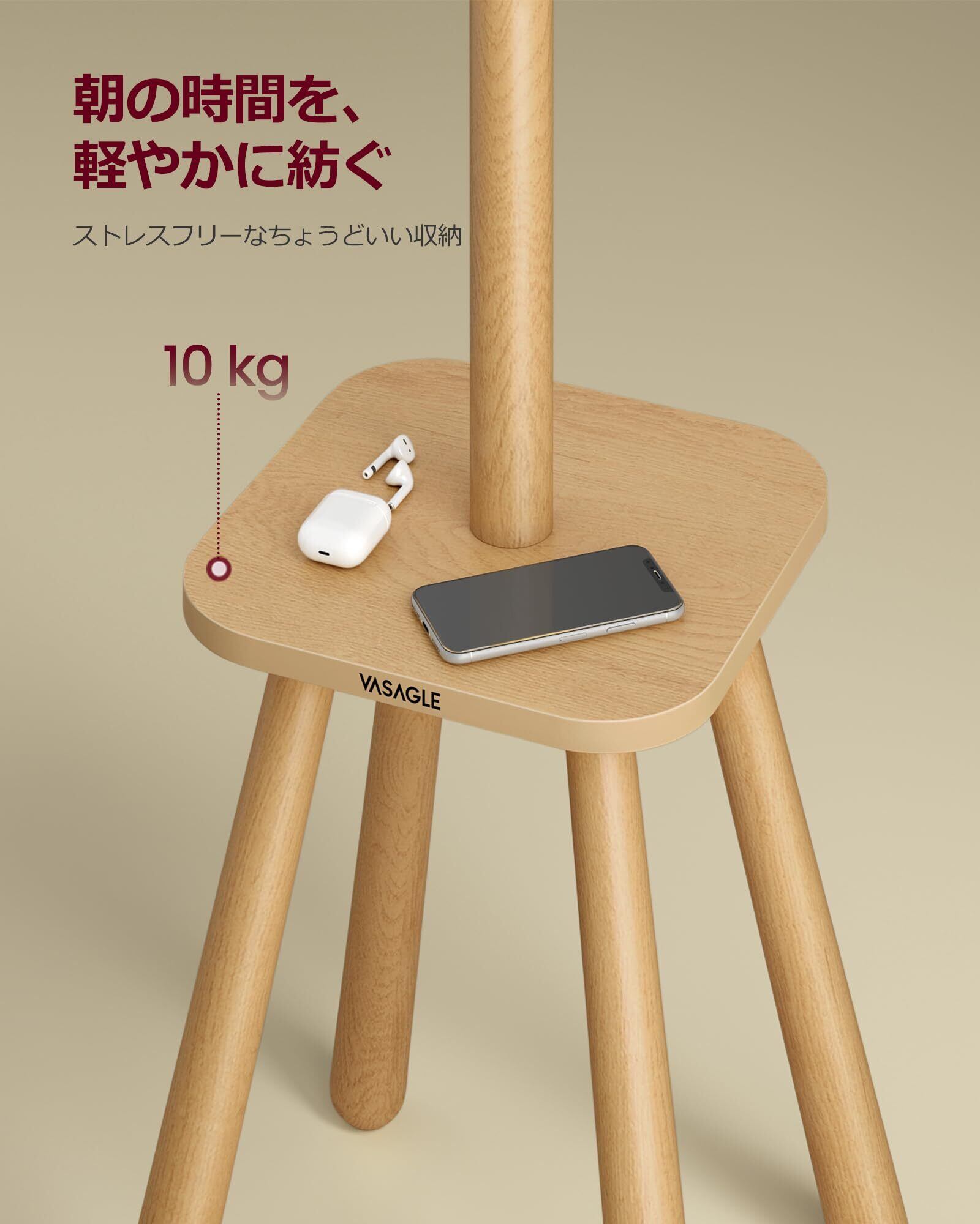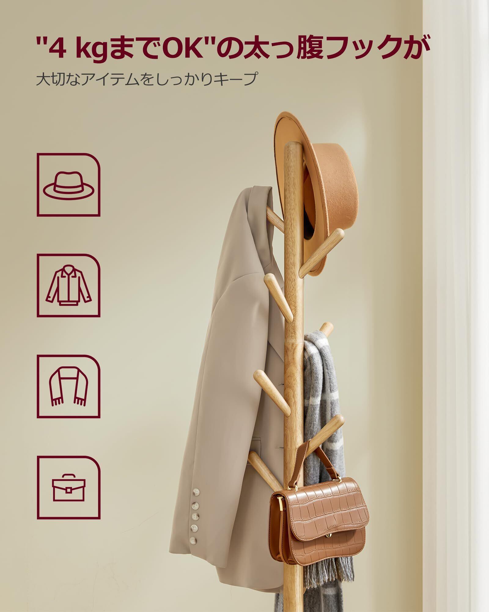 - 【多機能コートラック】 コート、帽子、バッグ用の8つのフックに加え、サングラス、財布、鍵などを収納できる便利な棚付き。日常の必需品を一箇所に整理でき、毎日のルーティンがスムーズに。