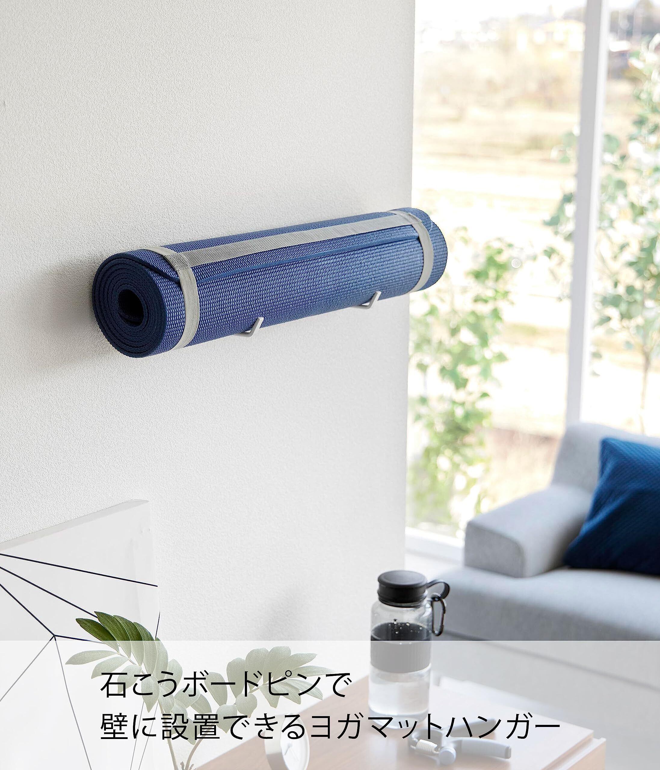 置き場所に困るヨガマットやフィットネスグッズを壁に収納!石こうボードピンで設置できるヨガマットハンガー。