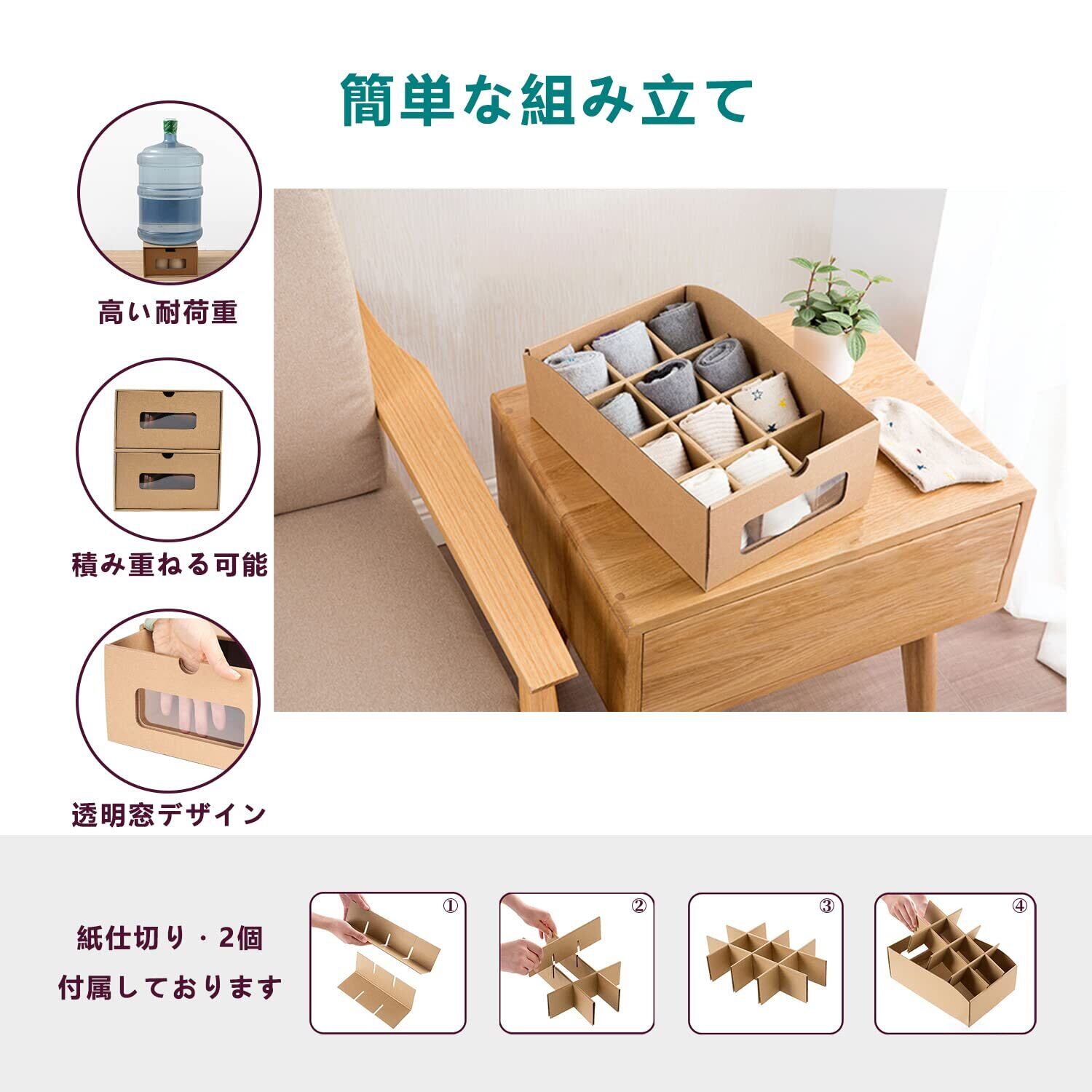 【高品質の素材&積み重ねる可能】高密度環境に優しい段ボール紙の材料は、強い耐荷重、安定した立って、揺れ、全体のデザインはシンプルでエレガントで、美しく実用的です。箱を積み重ねることが可能、使わない時には折り畳んで、コンパクトに収納できる。引き出しタイプですので、積み重ねだ時にも手間なく出し入れできます。とても便利です!