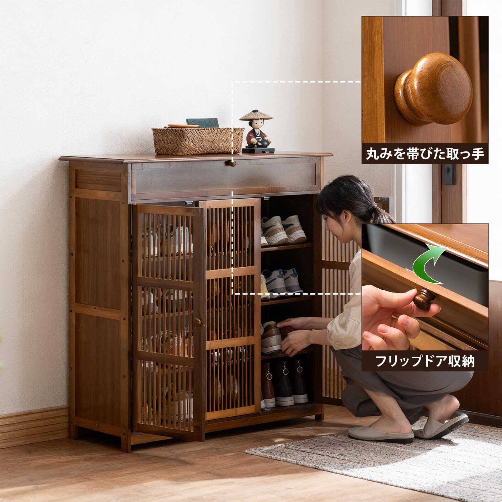 【シンプルなデザイン】シンプルなデザインだが、竹の温かみをしっかり生かしています。柔らかい質感がお部屋に自然に調和し、どんなインテリアにも馴染みやすいシューズボックスです。
