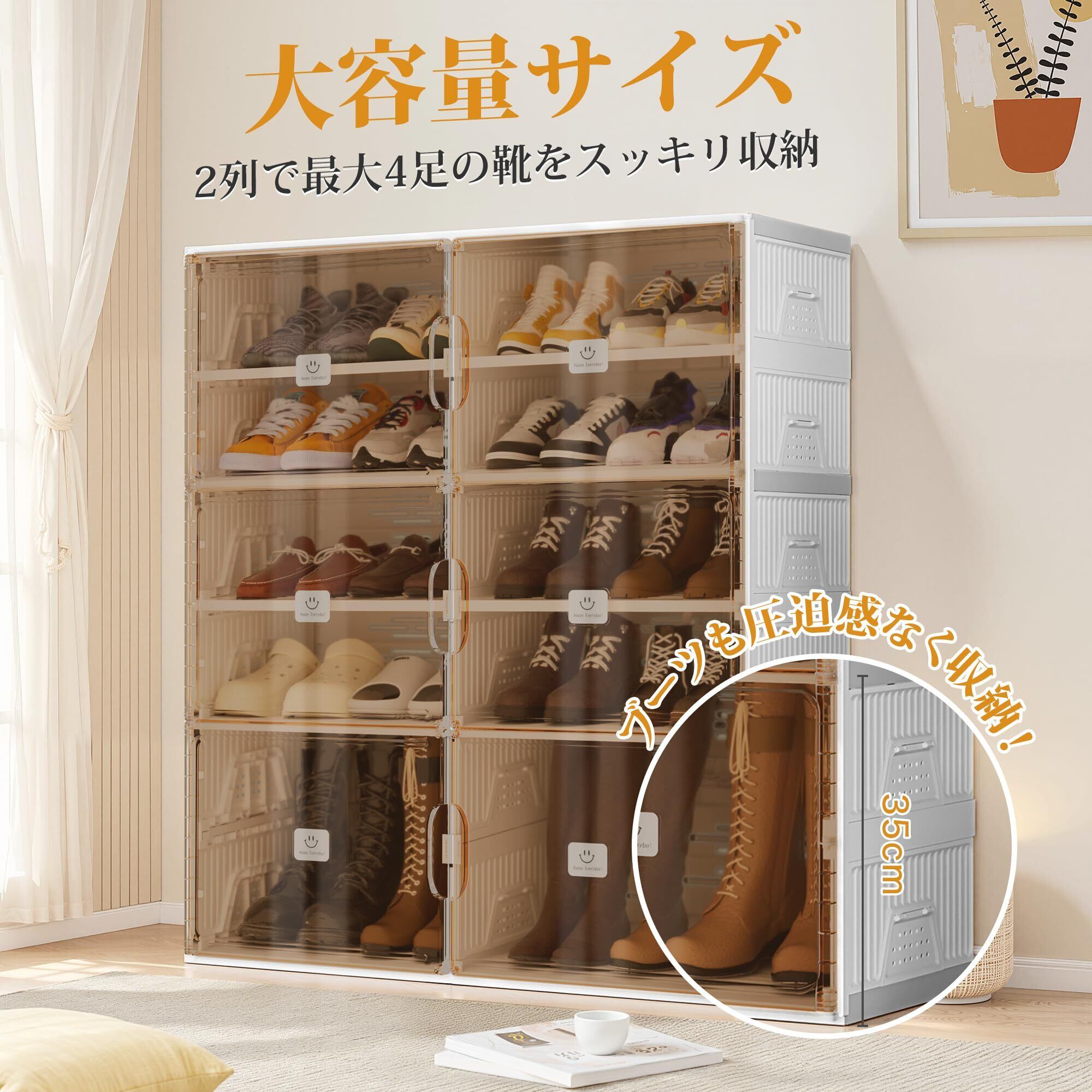 ✨クリアケースならではの防塵性能で、お気に入りの靴をほこりや湿気からしっかりと守ります。扉の開閉も簡単で、出し入れがスムーズです。いつでも清潔に保てる設計です。