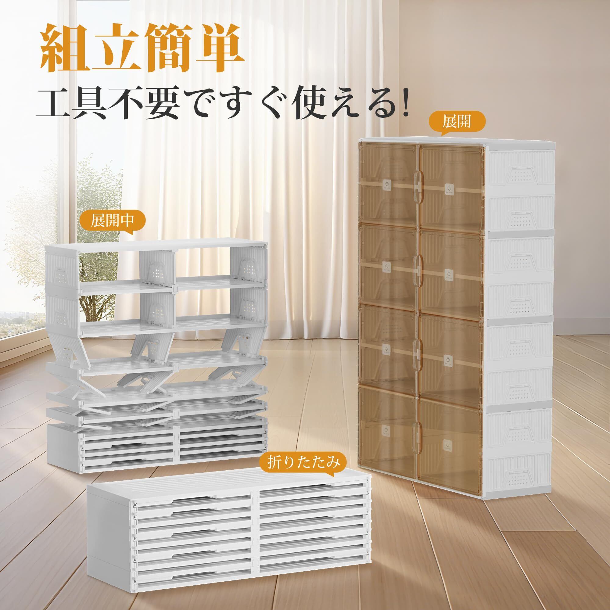 シューズボックス 靴箱 シューズラック 下駄箱 収納ボックス 収納ケース スニーカーボックス 折りたたみ式 簡単組立 クリア 透明 大容量 (7段-28足)