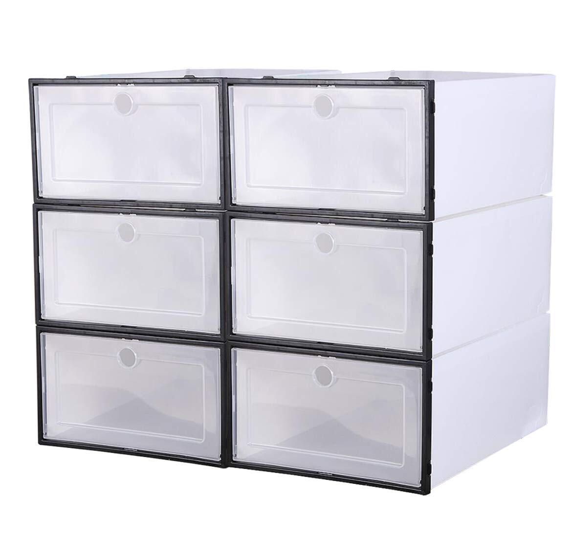シューズボックス シューズラック スニーカー ボックス 靴収納棚 6個セット 大容量 男女兼用 防塵 多層 プラスチックケース 折りたたみ 組立て式 (ブラック)