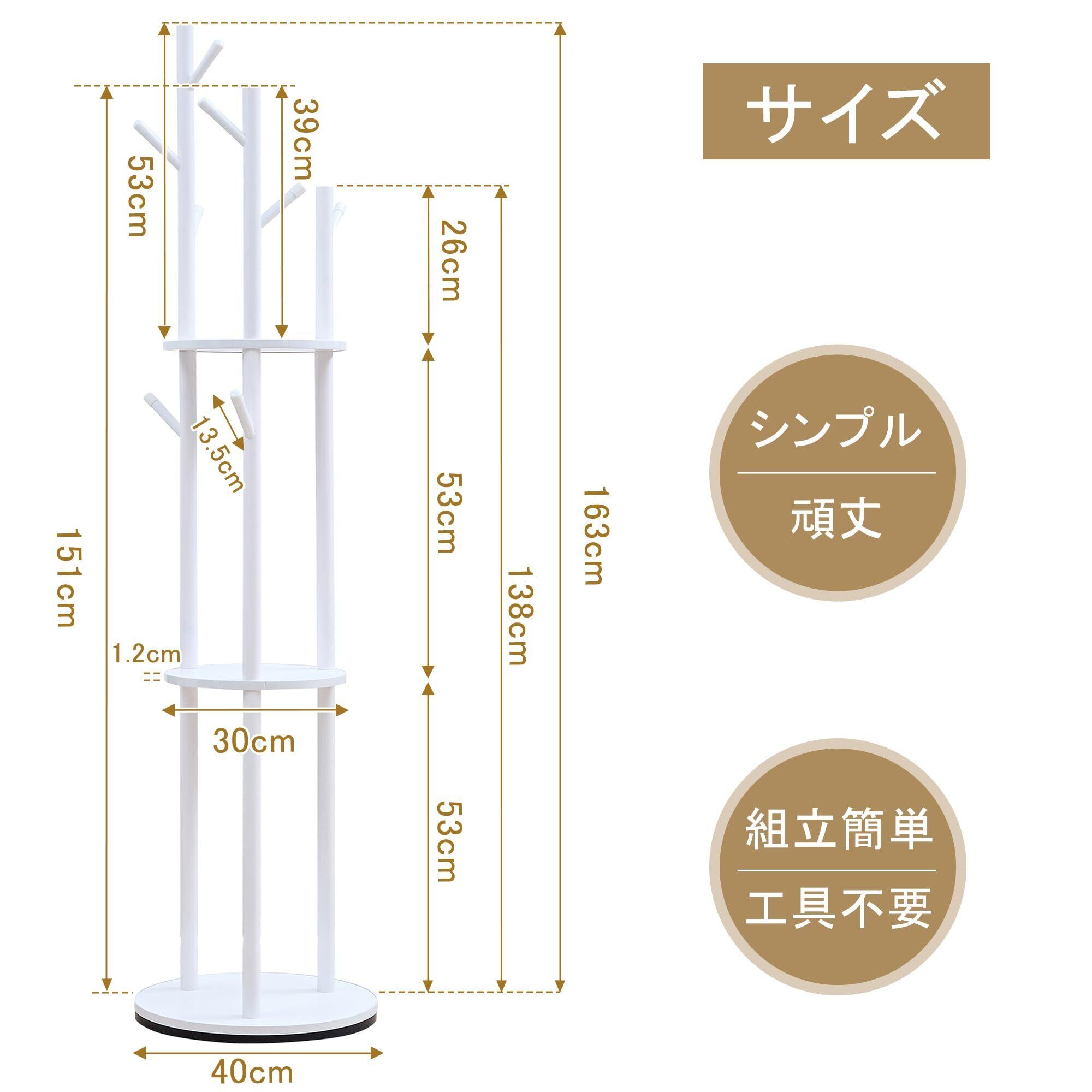 VECELO ポールハンガー コートハンガー コートラック 回転式ベース ハンガーラック 幅40×奥行き40×高さ163cm コート掛け 洋服掛け スリム 衣類収納 省スペース 多機能 おしゃれ コート 帽子 マフラー ホワイト