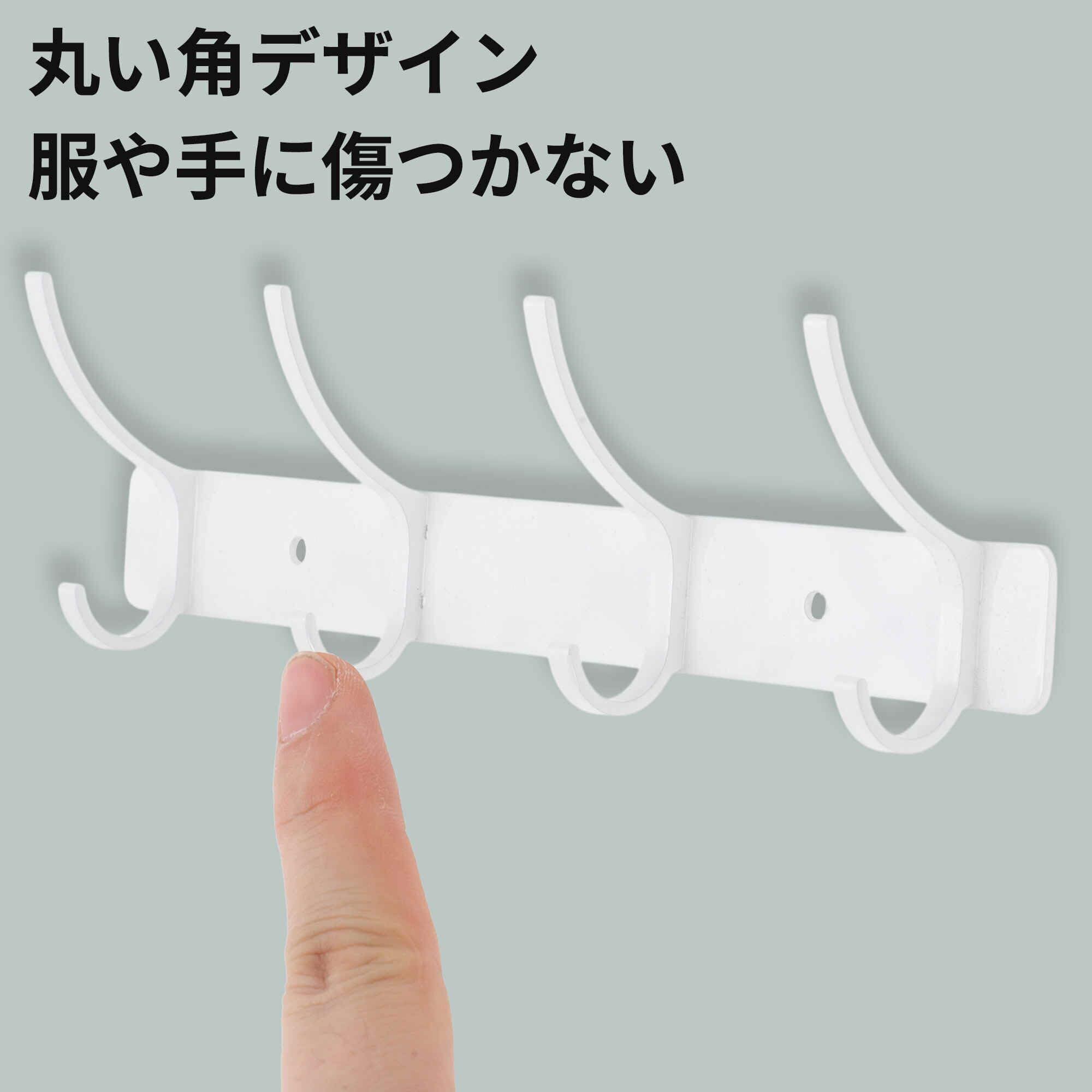 2個セット 壁掛けラック ウォールハンガー コートラック 壁掛けコートフック 掛けフック 4連 ハットラック バスルーム用 タオルフック ホワイト