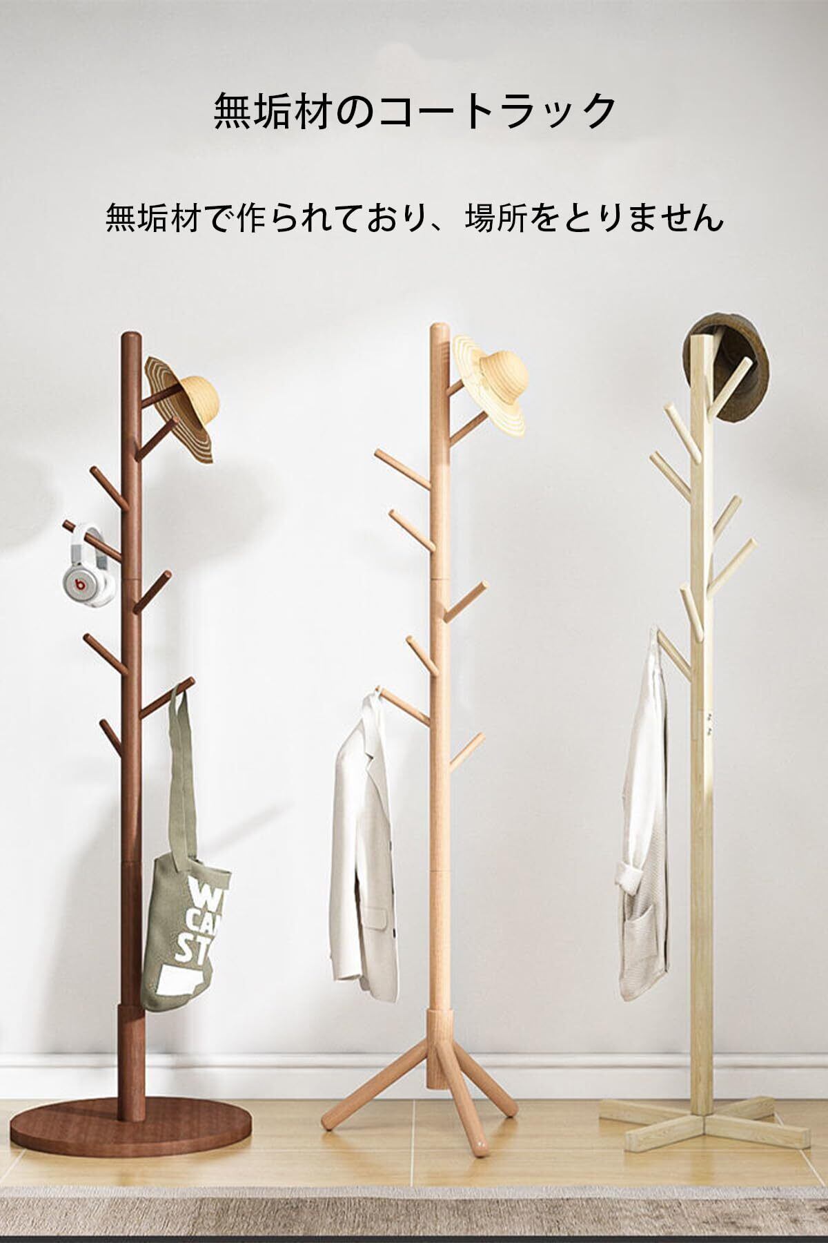 XXIAOTIAN(ゼクシオティアン) ポールハンガー コートハンガー 木製 ぽーるはんがー コート掛け 衣類収納 かばんかけ 40kg耐荷重 ハンガースタンド 枝型フック設計 帽子掛けスタンド 洋服掛け ポール 玄関ハンガー組み立て簡単 倒れ防止 リビング 寝室