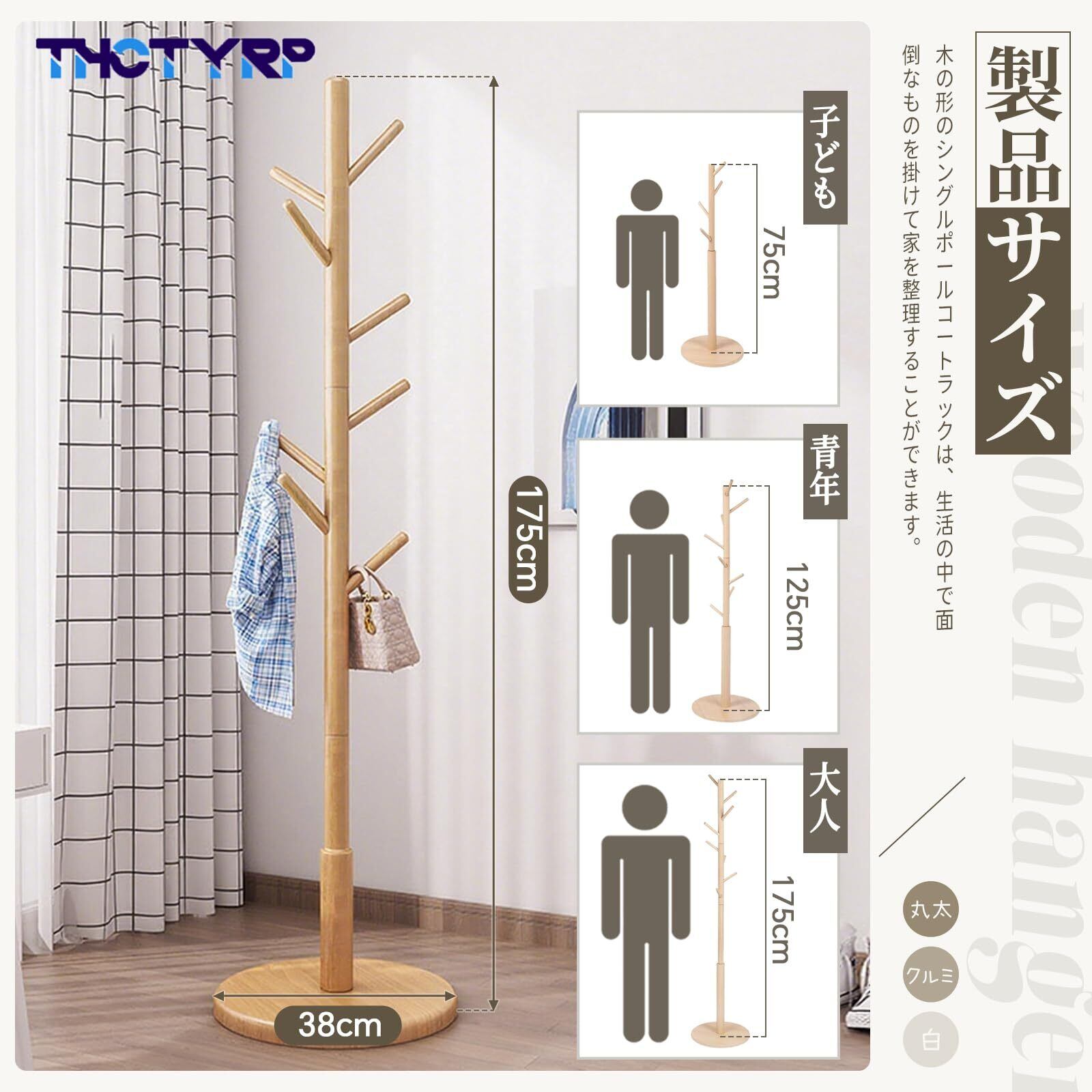 【使いやすい】:木製洋服ハンガーの組み立てや分解に工具は必要なく、フックをしっかりと締めるだけです。 ポールハンガーはスペースをほとんどとりませんが、ネクタイ、帽子、スカーフなどの多くの衣類やアクセサリーを保管できます。 フックは千鳥配置を採用し、360°均等に配置されているため、スペースの利用効率が向上し、衣服を別々の場所に掛けることができ、衣服を取るときに他の衣服に引っかかるのを防ぎます。 ソファ、椅子、玄関、リビングルーム、ベッドルーム、オフィスの整理に。
