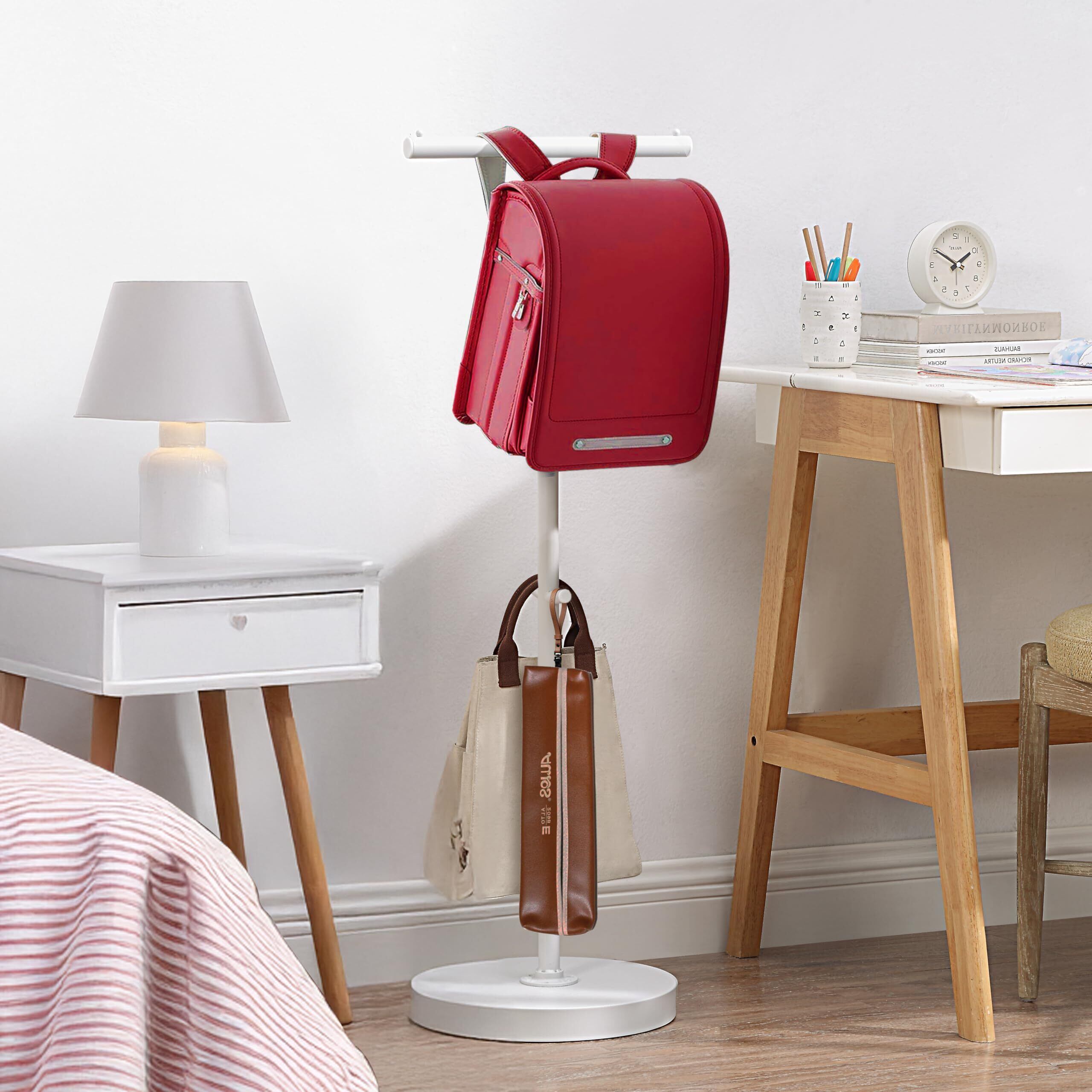 サニーポイント ポールハンガー フック付き 衣類収納 ランドセルスタンド 安定 キッズ コートハンガー スタンド バッグ掛け スリム ハンガーラック スチール (ランドセル掛け x ホワイト)