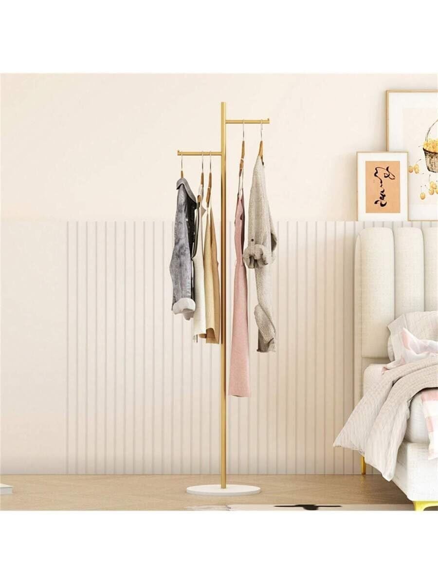 モダンベッドルームハンガーラックフロアスタンド 玄関 ラック ホワイト コートスタンド 脚立式 服掛け アイアン製 シンプルなスタイル 衣類掛け組み立てること容易 (ゴールド)