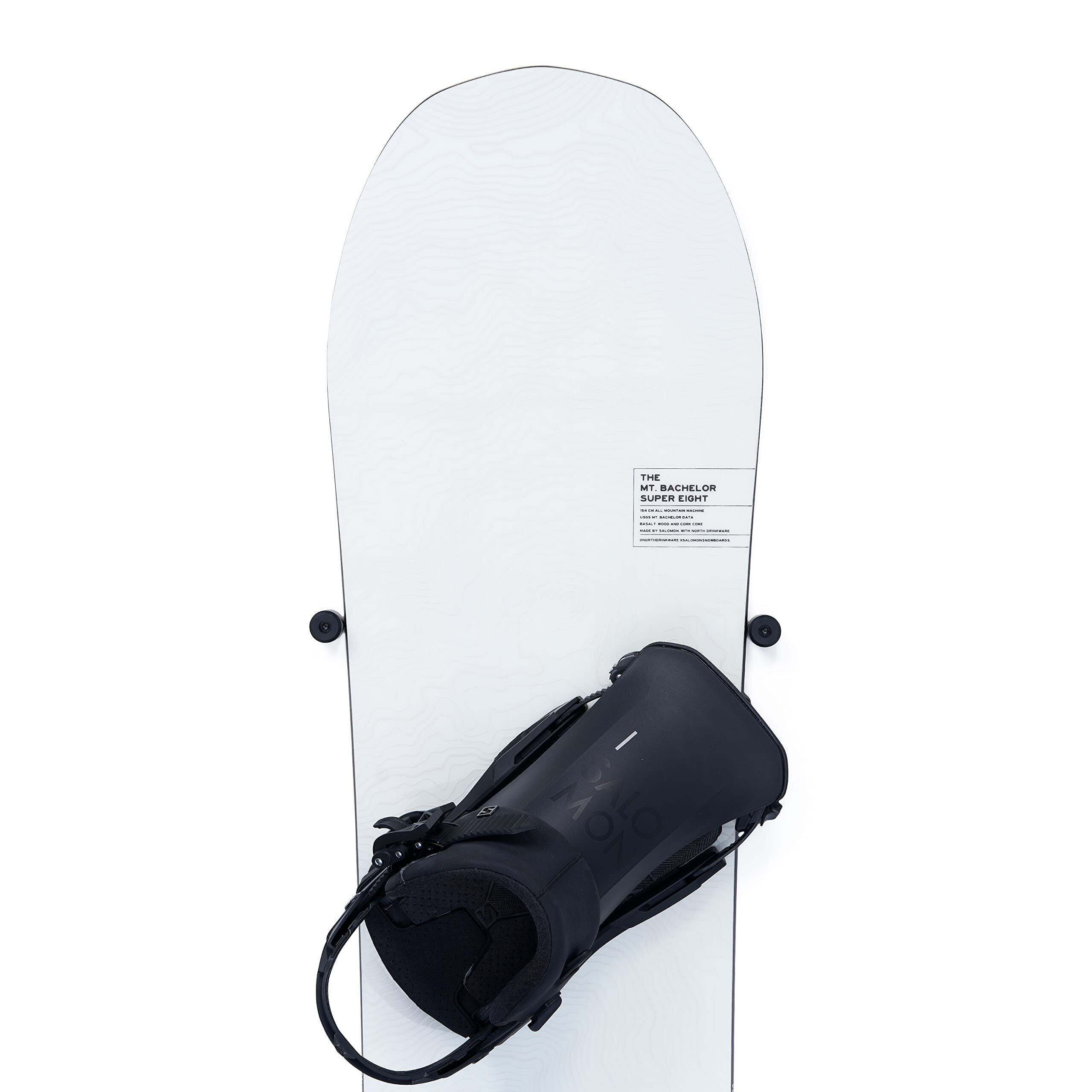 スノーボードは、バインディングの有無にかかわらず、安全かつ簡単に取り付け、取り外しができます。 このスノーボードハンガーは、ボードをエッジ(スノーボードのテーパーウエスト)で保持するだけで、下向きの重力がスノーボードを所定の位置に保持します。