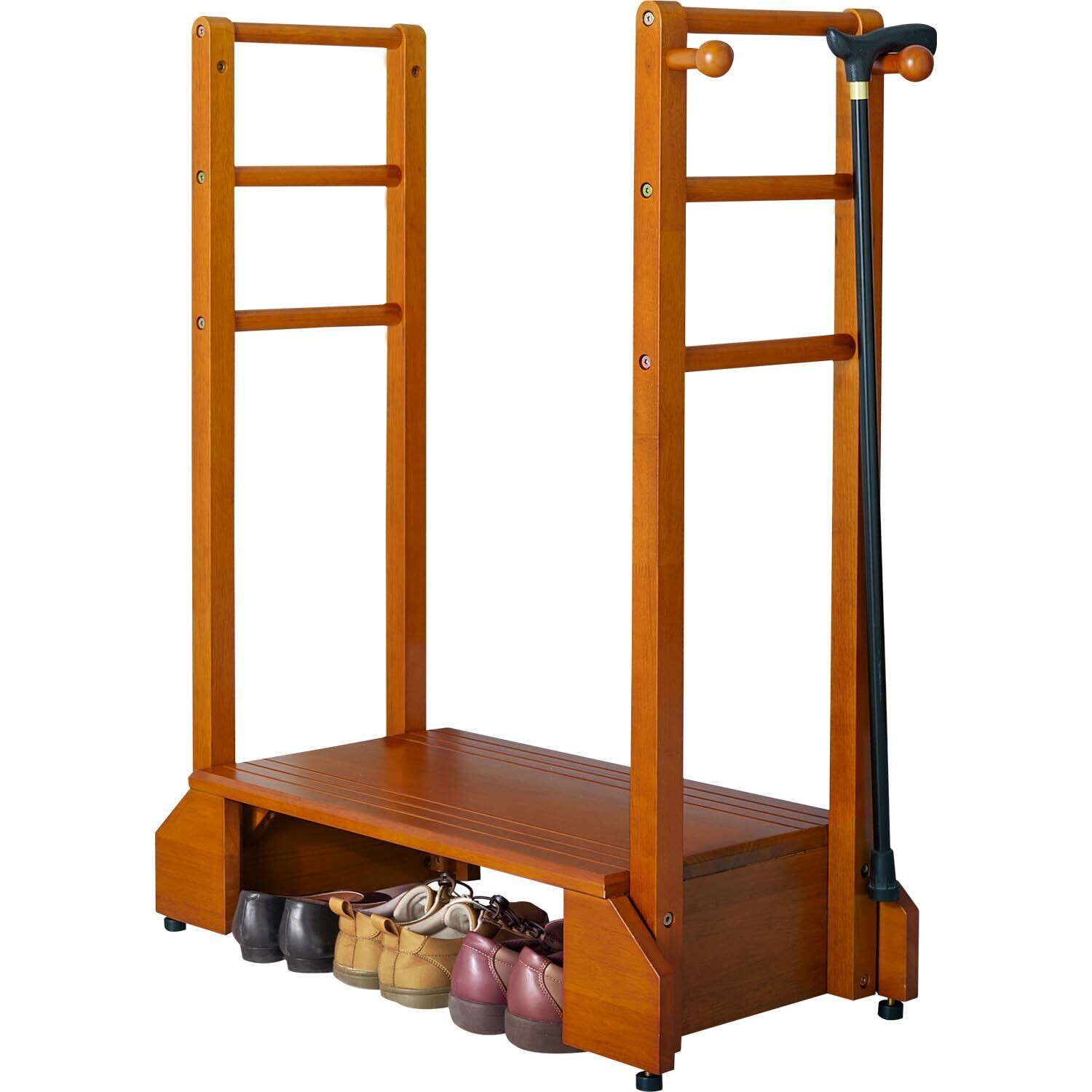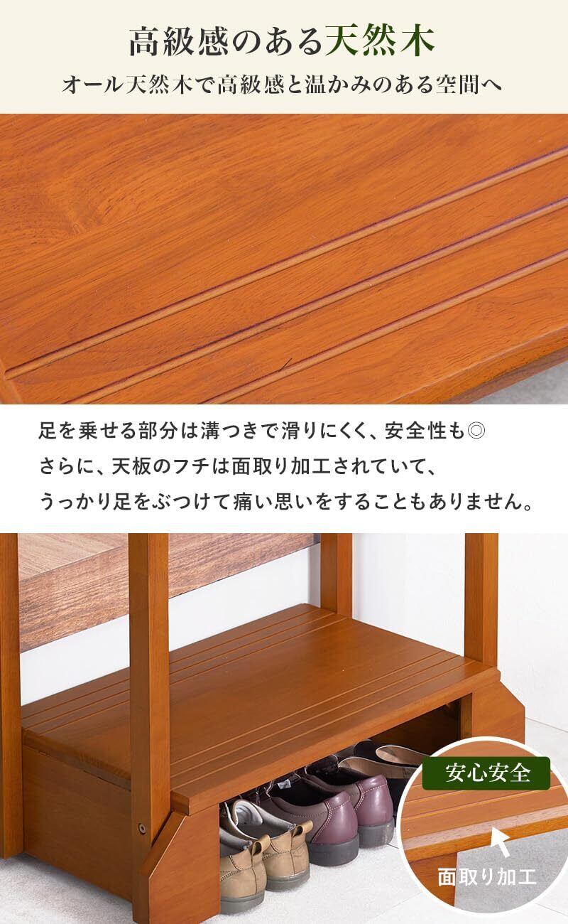 \【◆萩原 玄関踏み台 玄関台 手すり付き 踏み台 手すり台 両手すり 【少し高めの玄関にピッタリ】 頑丈 ひざ 腰 負担軽減 子供 高齢者 ペット 幅76.5 VH-7938LBR-D】/家族全員の安全を考えた設計!