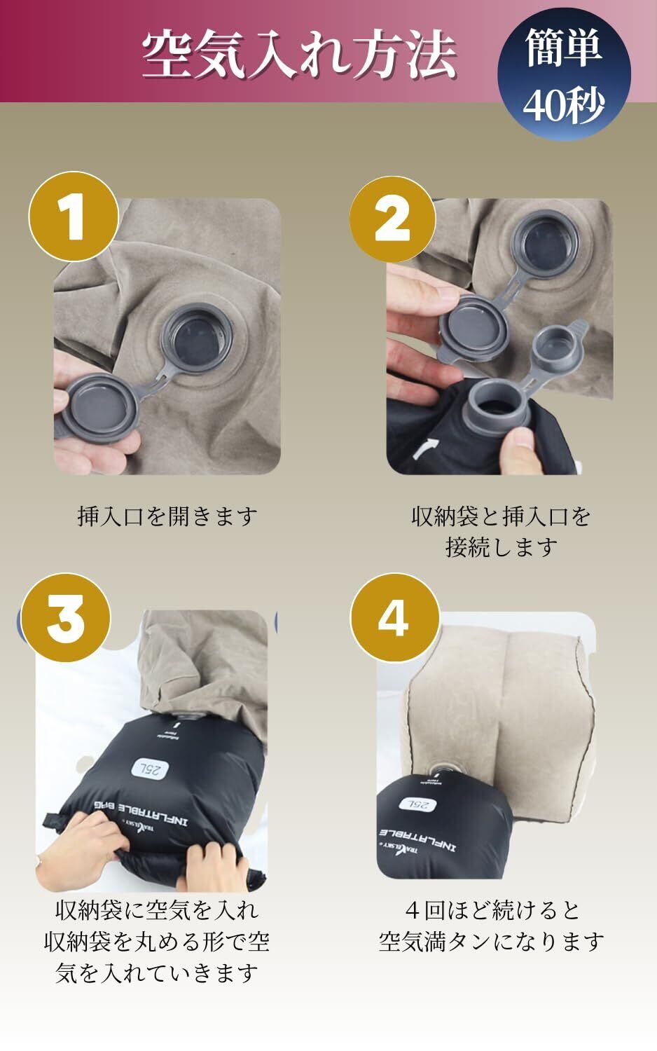 ✨ポンプ不要のため、手間いらずでスムーズに空気を入れられます。特に移動中の疲れを和らげたい方に最適で、快適な足元を実現します。