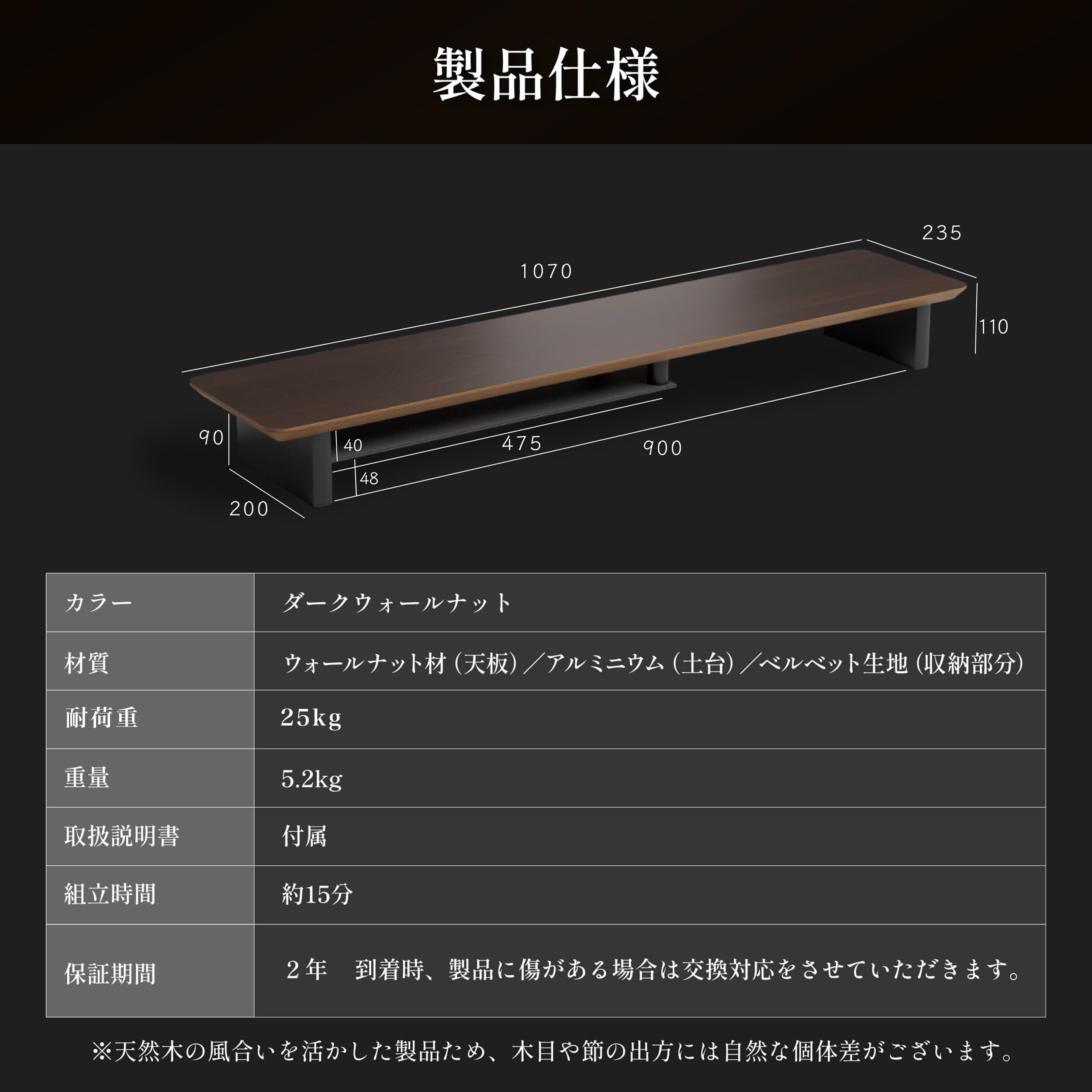 amesoba 木製 モニタースタンド 卓上 デスクシェルフ (天板:ダークウォールナット/パーツ:ブラック)