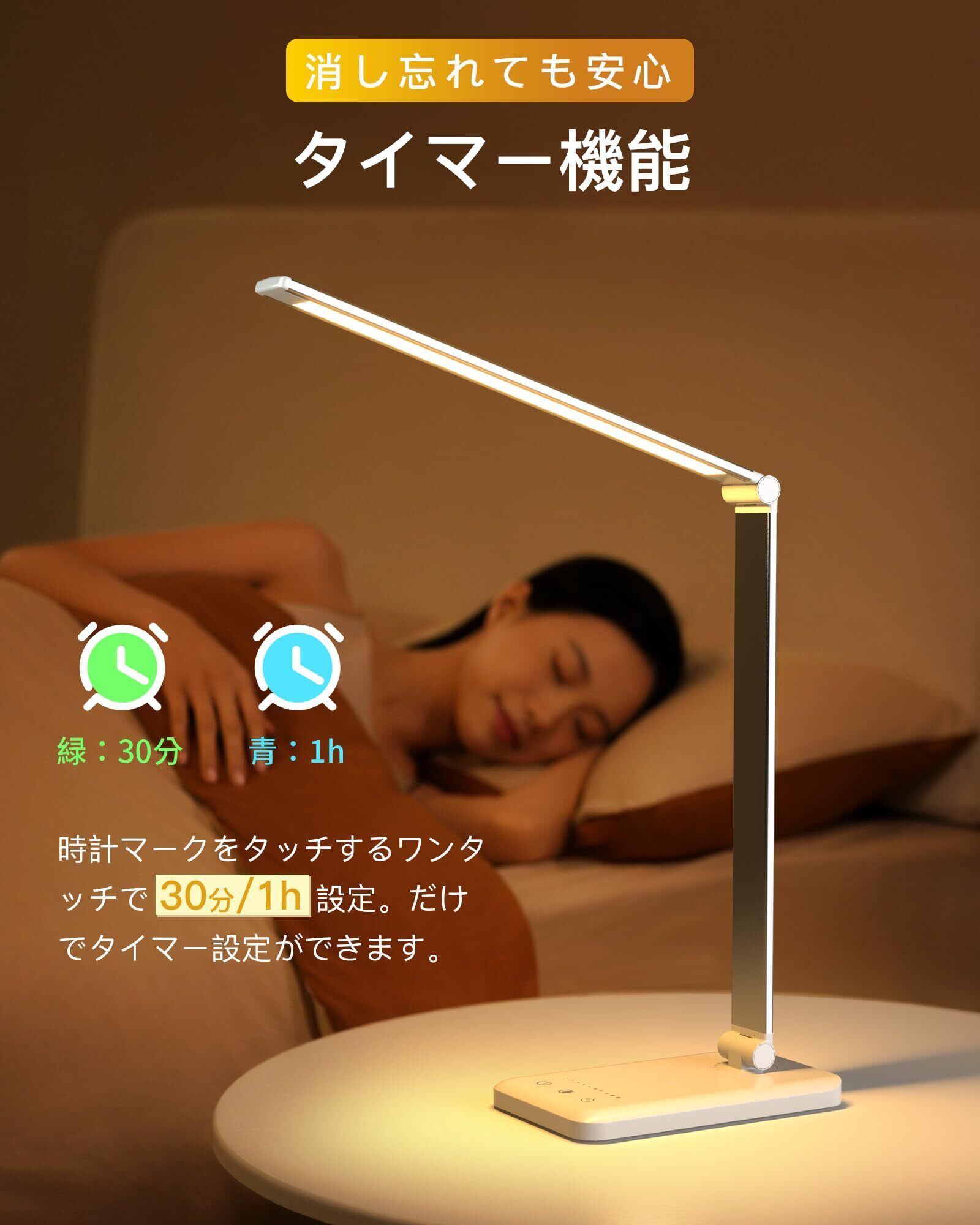 【タイマー機能・記憶機能】この電気スタンド 卓上は記憶機能があり、消灯後も、前回使用時の明るさや色温度の設定を自動的に記憶することができます。ユーザーは使用するたびに、デスクライトのパラメータを手動で調整する必要はない。ledライト スタンドを開くときはこれまでの設定に基づいてユーザーの好みの状態に自動調整し、快適な照明体験を提供します。このスタンドには使いやすいタイマー機能も搭載されており、ledライトップライトは設定時間が経過すると(スタンドライトを押して30分青信号を設定し、デスクライトを押して60分青ランプを点灯する)、ライトが自動的にオフになるので、消し忘れの心配がなく、節電にも役立ちます。だからこのスタンドライトは寝る前に読んだり、一定の時間働いて休みたい人に特に適しています。