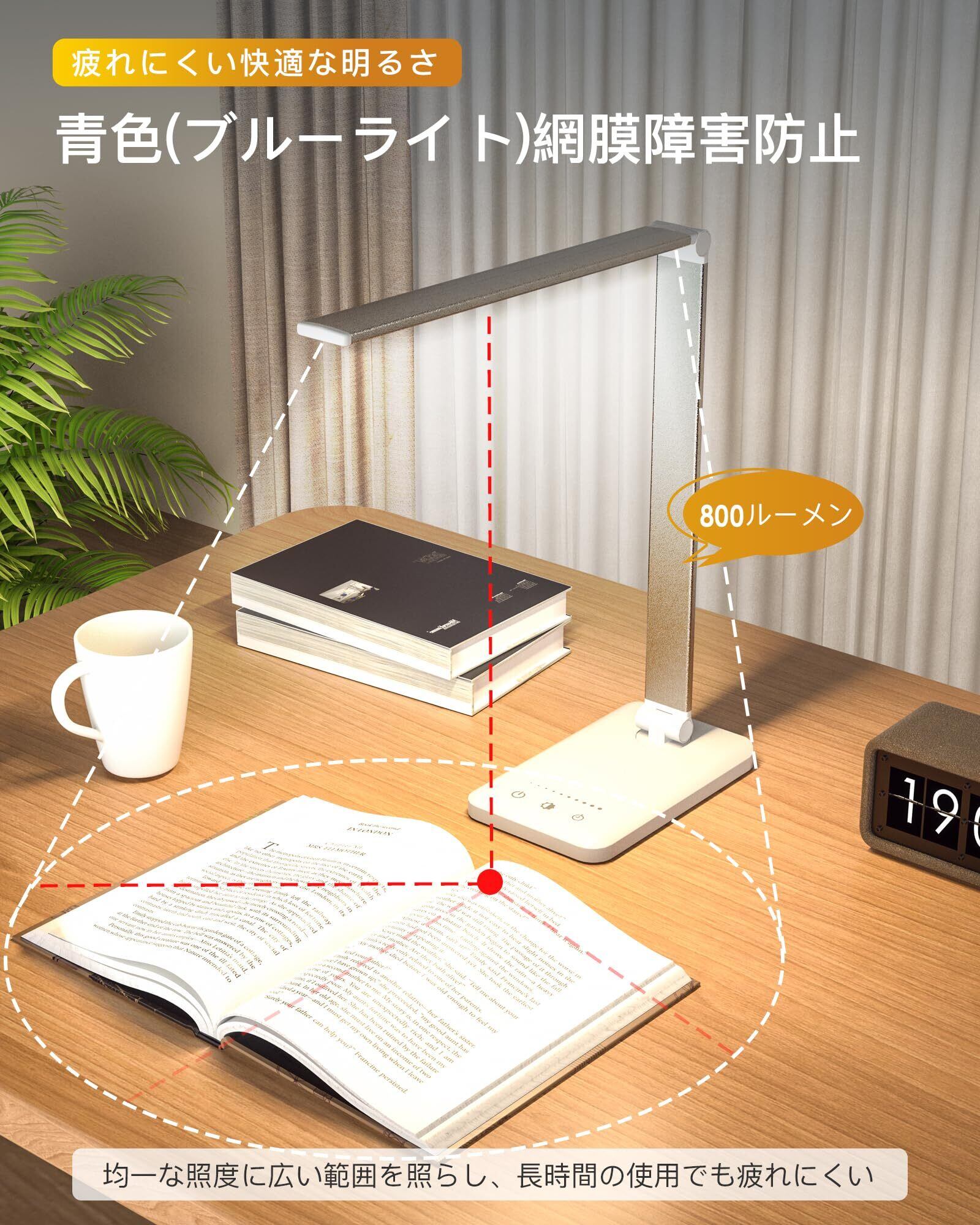 【目に優しいデスクライト・高演色性】高品質で点滅しないライト ledを採用し、省エネ、平面発光の設計が可能で、多重陰影や点滅が発生しにくい。電気台卓上の光は柔らかく均一で、演色指数は80以上。目への負担を軽減し、長時間の仕事や勉強でも目が酸っぱくなりにくく、視覚疲労を軽減し、視力保護に役立つ折りたたみ卓上ライト、読書灯、ナイトライト、電気スタンド ledです。