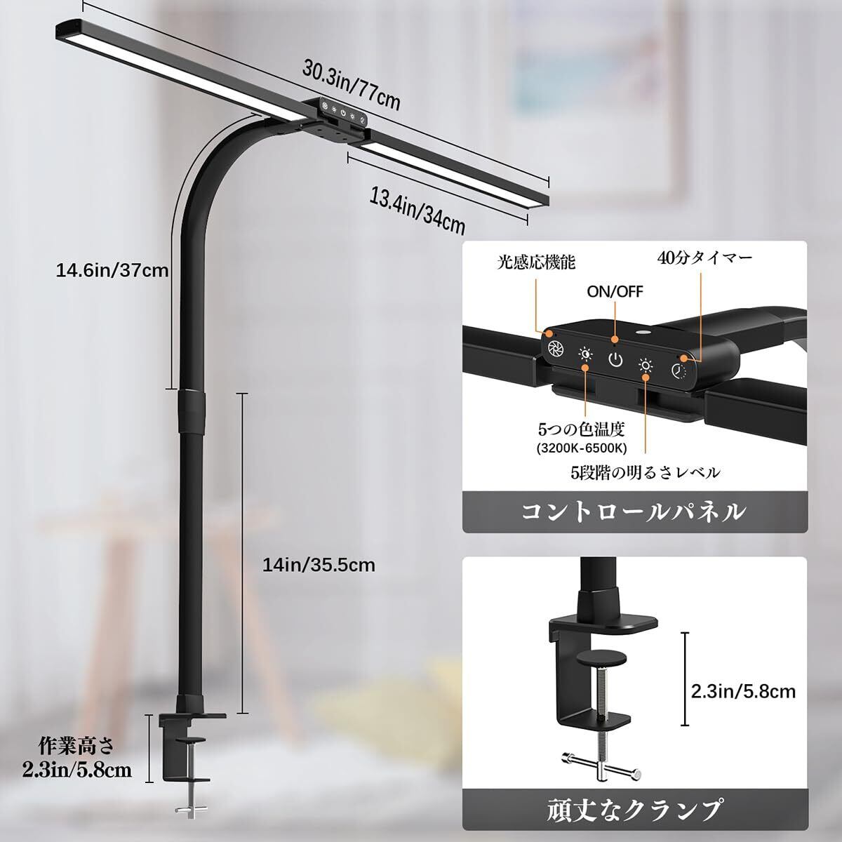 ✨【デスク全体を照らす】この24Wクランプ式LEDデスクライトは、77cmの超幅広デュアルライトバーを装備し、最大作業高さ77cm、228個のLEDライトビーズを内蔵、最大輝度1800LMを実現しています。大型デスクでの作業、勉強、モニター、絵画、読書、ゲームなどに最適です。