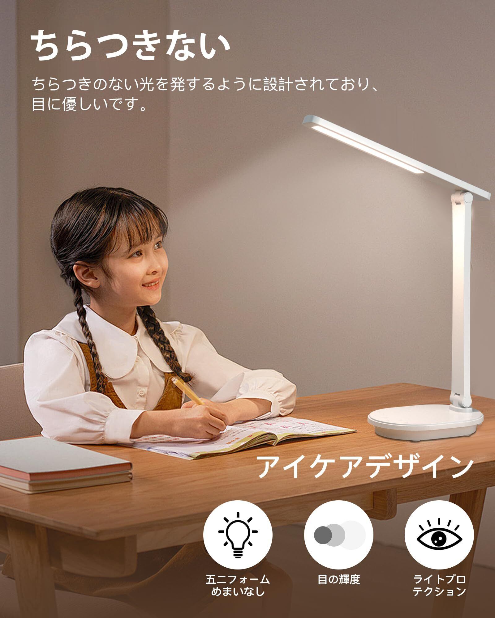 【目に優しいデスクライト・高演色性】高品質で点滅しないライト ledを採用し、省エネ、平面発光の設計が可能で、多重陰影や点滅が発生しにくい。電気台卓上の光は柔らかく均一で、演色指数は80以上。目への負担を軽減し、長時間の仕事や勉強でも目が酸っぱくなりにくく、視覚疲労を軽減し、視力保護に役立つ折りたたみ卓上ライト、読書灯、ナイトライト、電気スタンド ledです。