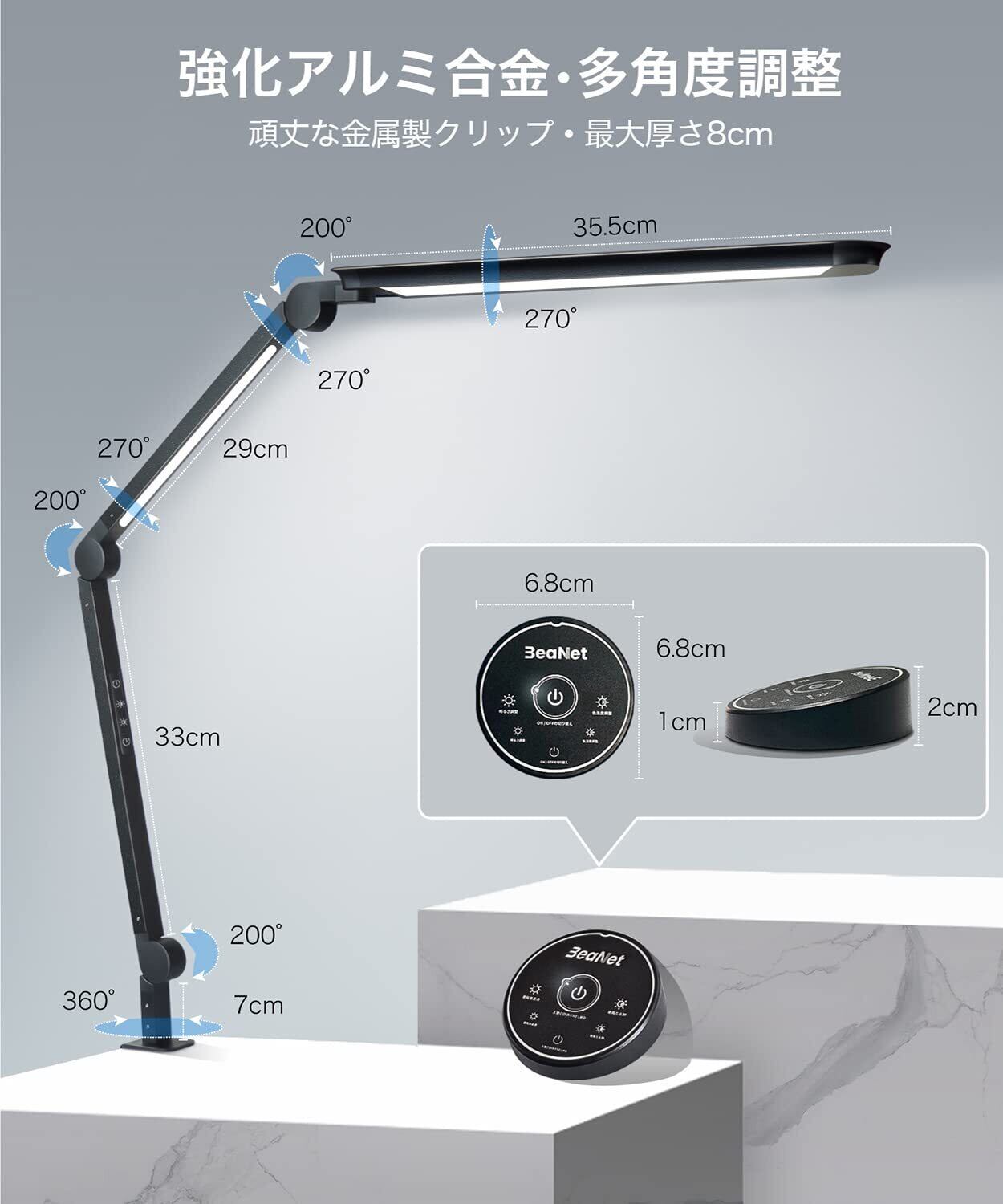 【デュアル光源・環境補助光版】BeaNet ダブル光源LEDデスクライトは再設計され、照射範囲が広く、より均一で柔らかい光、ストロボなし、ブルーライトなし、多重影なし、あなたの目を保護します。 演色性指數はRa>90、自然光に近い光を照らし、正しい色が見えます。 金属クランプの幅が広く、硬いので、️ 机の最大厚さ55mmでのテーブルトップにも簡単に設置できます。️ [PSE認証済]消費電力:15W。