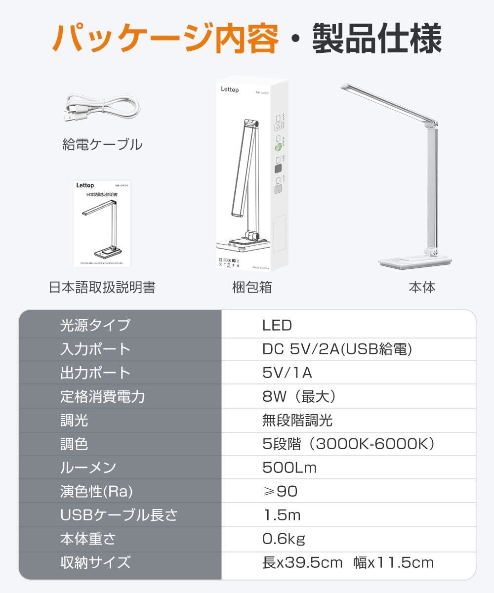 【2024新登場・省エネ&目に優しい】 デスクライト 明るい ledライト 照明 無段階調光 5段階調色 高輝度 スタンドライト デスク ライト USB給電式 電気スタンド 卓上 ledデスクライト 折り畳み式 収納簡単 卓上ライト led 軽量 机 ライト 読書 寝室 学習机 スマホ給電可能 タイマー機能 おしゃれ 目に優しい 読書灯 (ホワイト)