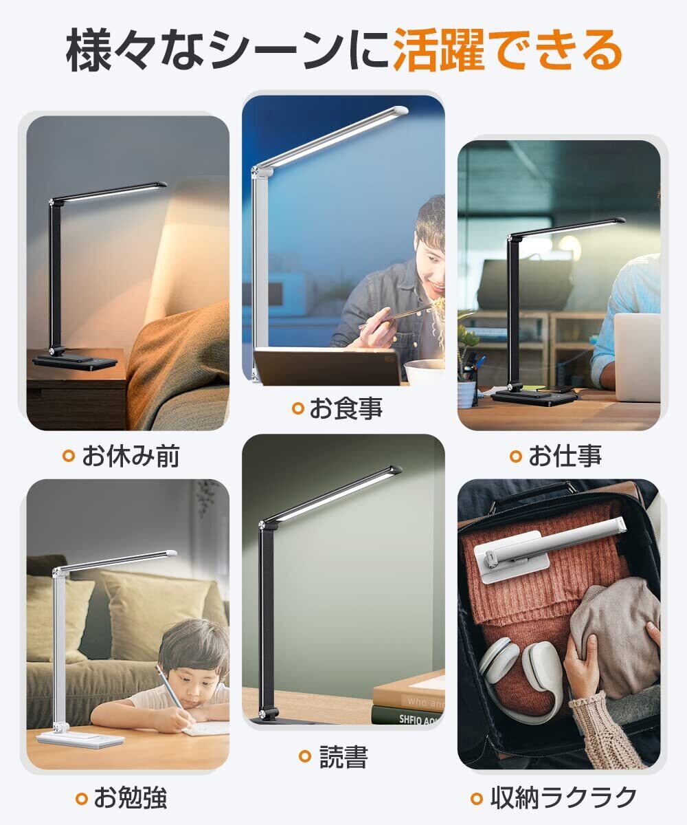 \【◆2024新登場・省エネ&目に優しい デスクライト 明るい LEDライト 照明 無段階調光 5段階調色 高輝度 スタンドライト デスク ライト USB給電式 電気スタンド 卓上 LEDデスクライト 折り畳み式 収納簡単 卓上ライト LED 軽量 机 ライト 読書 寝室 学習机 スマホ給電可能 タイマー機能 おしゃれ 目に優しい 読書灯 (ホワイト)】/新たな照明のスタンダードです!