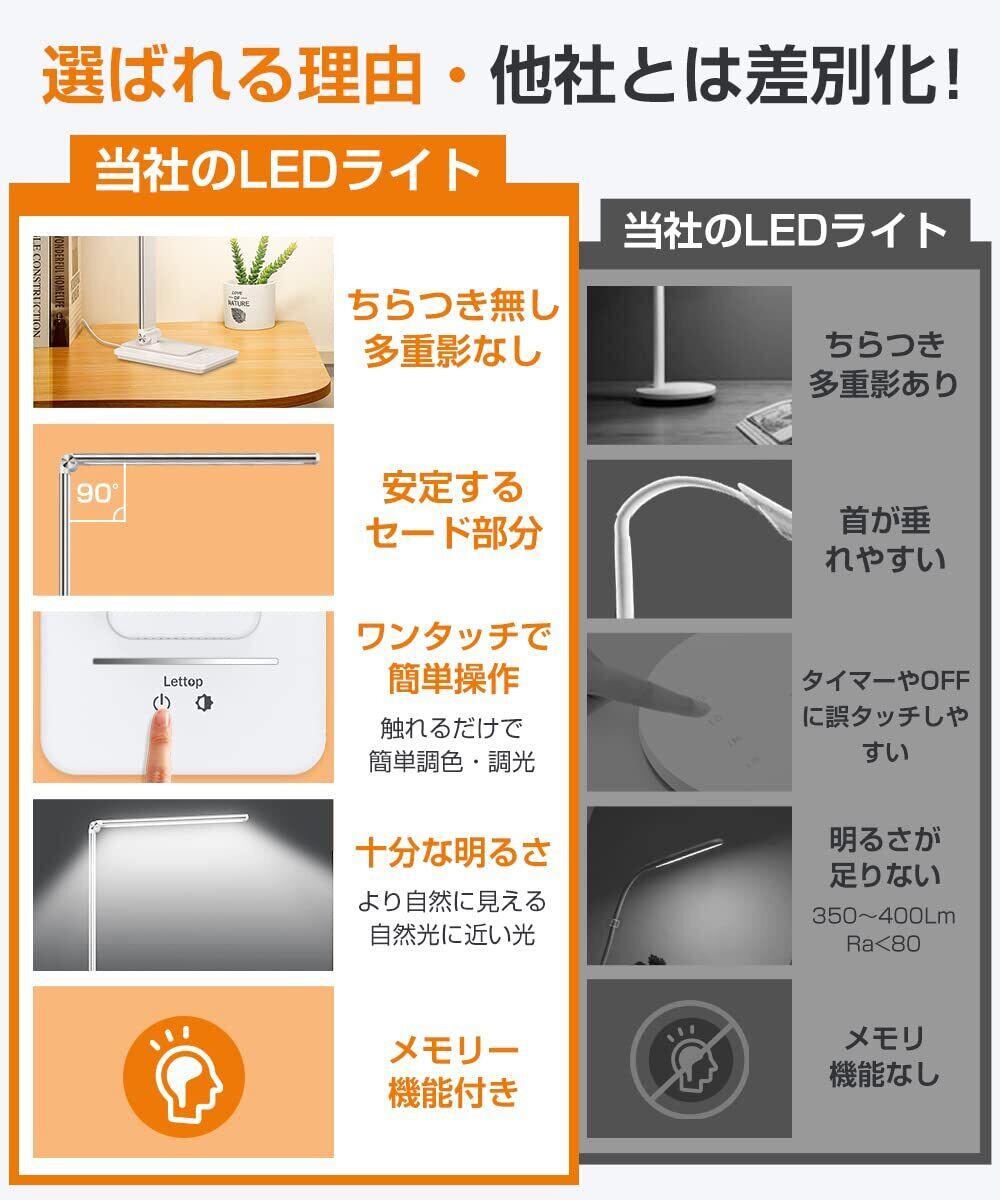 ✨LEDライトはフリッカーフリー設計で、長時間の使用でも目の疲れを軽減します。まぶしさがなく、安定した光を提供することで、集中力を維持しやすくなります。
