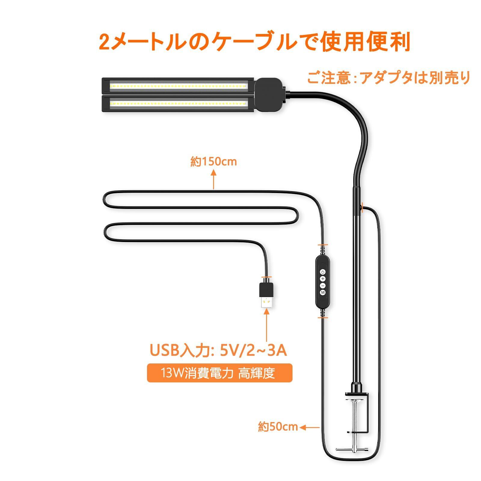 デスクライト LED ダブルヘッド 電気スタンド クランプ式 13W高輝度 ダブル光源スタンドライト 3色温度・無段階調光 テーブルライト 360°回転可能 クリップライト 簡単操作 机用 子供 仕事用ライト 卓上ライト 寝室用ライト 目に優しい読書灯