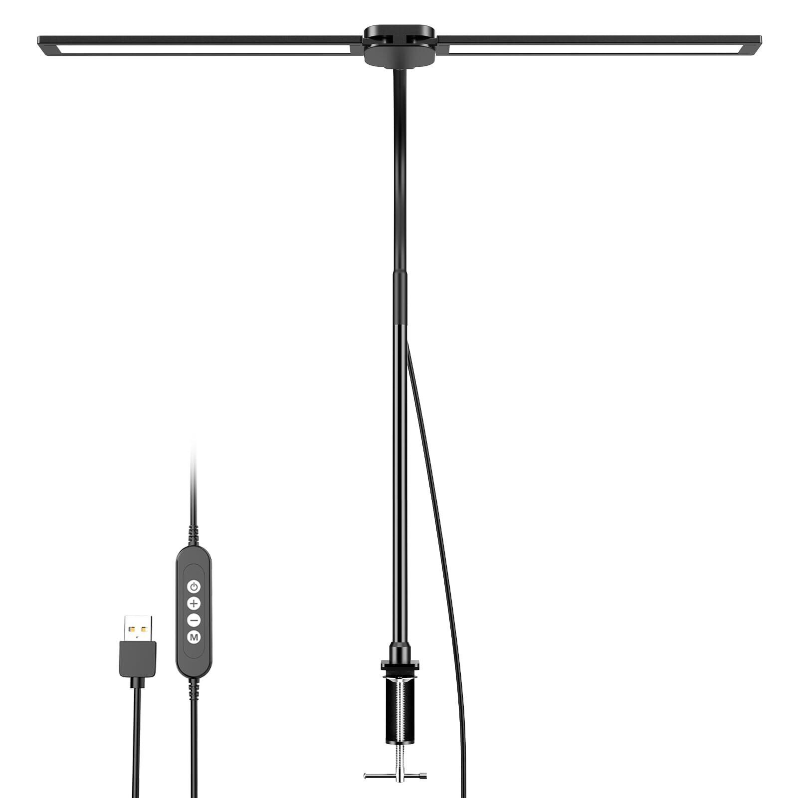 【高輝度双頭デザイン】ダブル光源、従来の照明器具よりも照射面積が広く、0°~180°角度調整可能、ダブルヘッド部分を全開すると、60cm幅広い照明エリアを提供し、コンピューターの画面、モニター、作業、勉強机、読書、手芸などに非常に適しています。