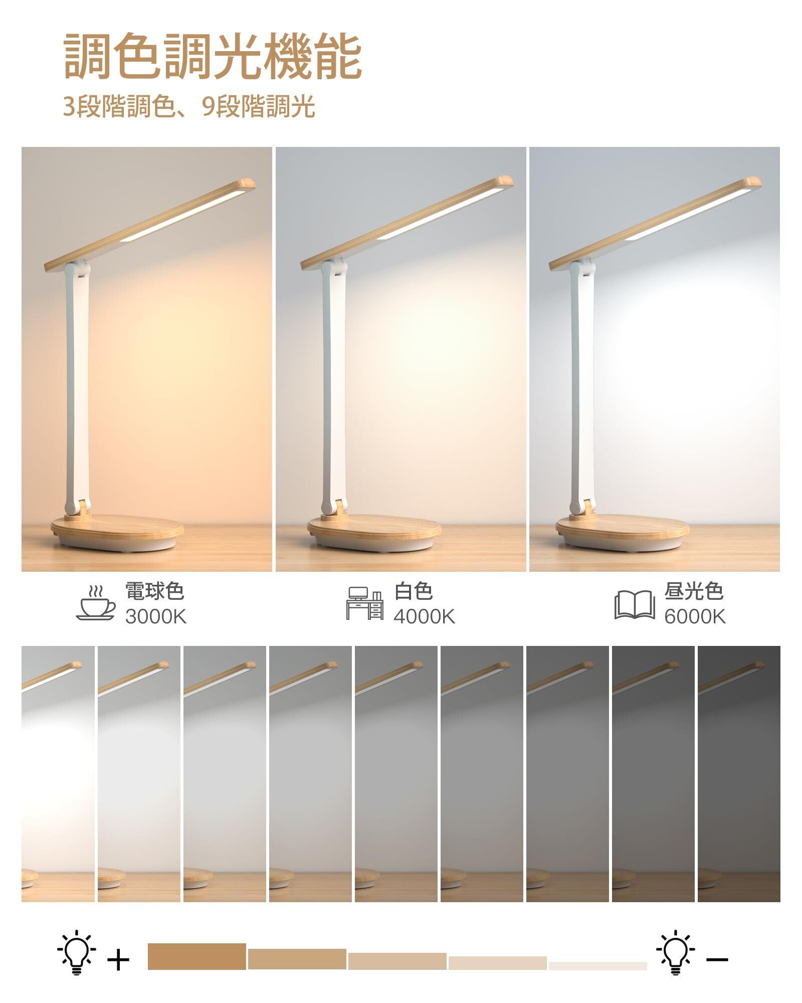 【2025新登場木目調・充電式両用】スタンドライト デスクライト 9段階調光 3段階調色 木目調スタンド 卓上ライト led 記憶機能 高輝度 電気スタンド led 机 勉強 多角度調整 収納簡単 省エネ 人気 卓上照明 勉強机 学習机 浅木目