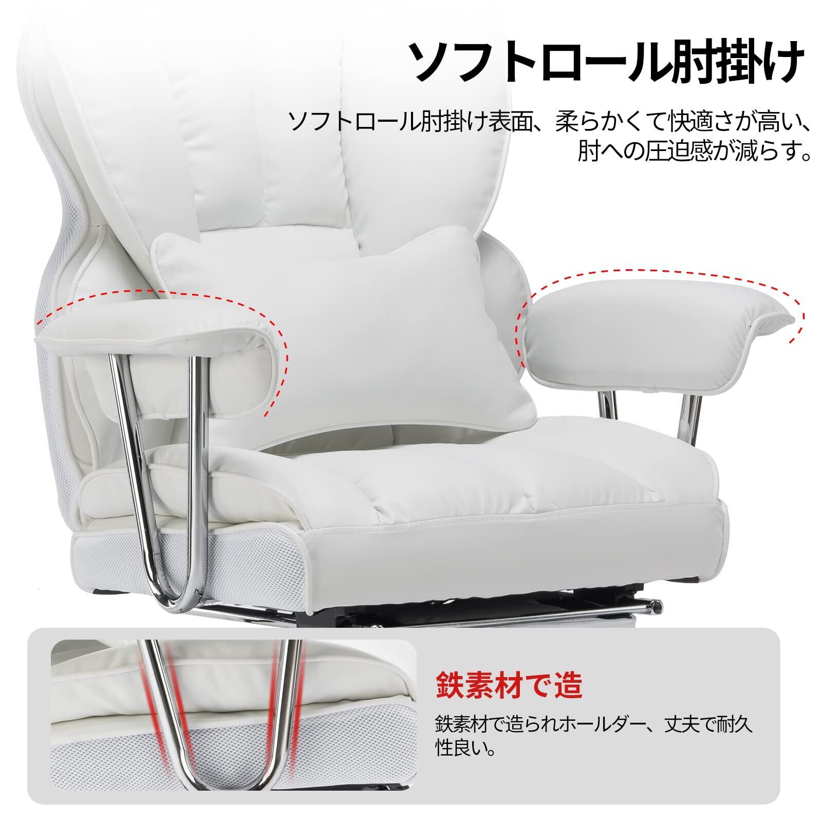 SKYE ゲーミングチェア 座り心地最高 デスクチェア オフィスチェア 椅子 テレワーク 社長椅子 伸縮可能のオットマン 高さ調節機能(ホワイト)