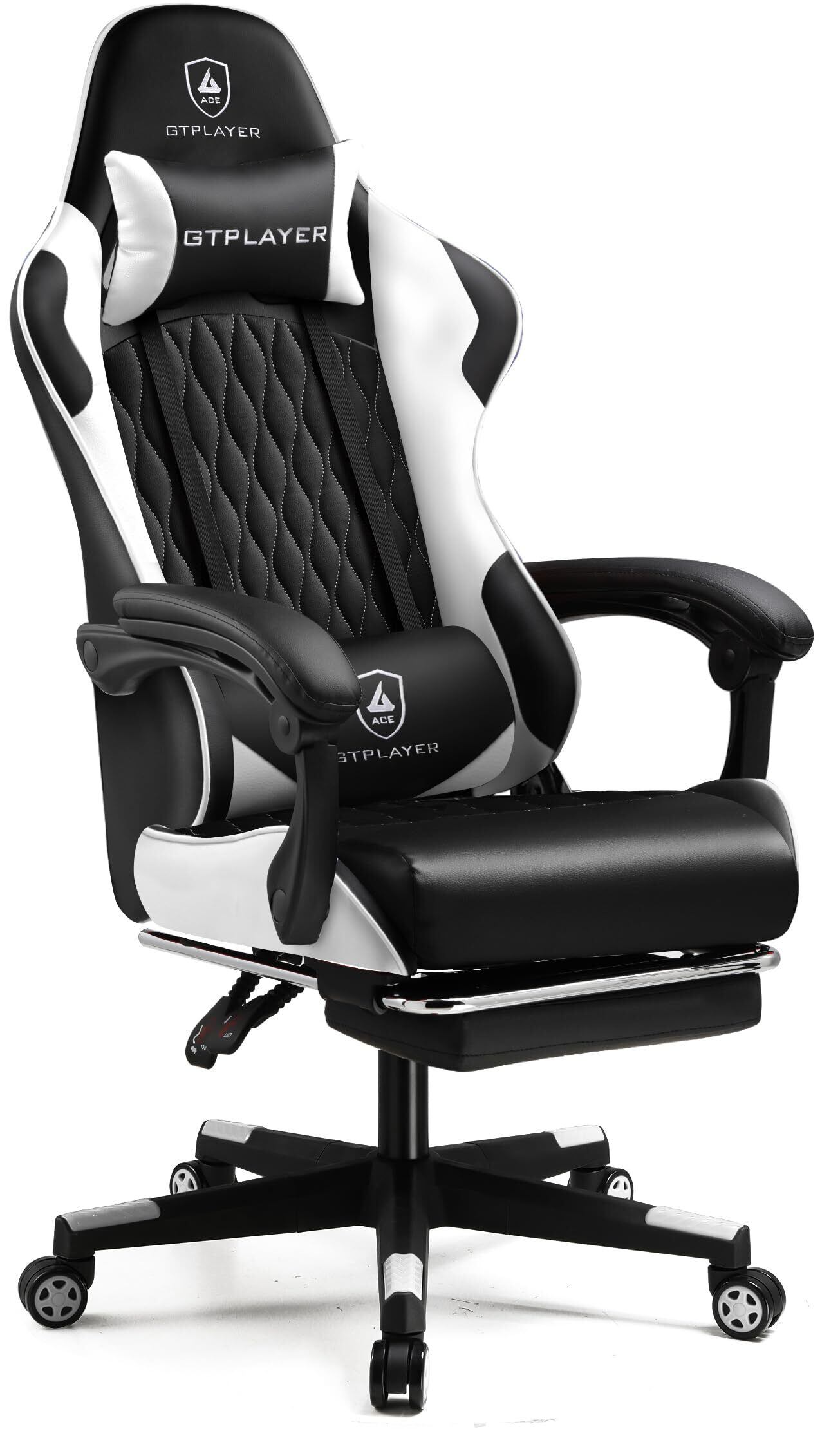 GTRacing ゲーミングチェア オフィスチェア デスク pcチェア 椅子 テレワーク 145°リクライニング オットマン付き ゲームチェア ハイバック ランバーサポート ポケットコイルが内蔵 PUレザー (WHITE)