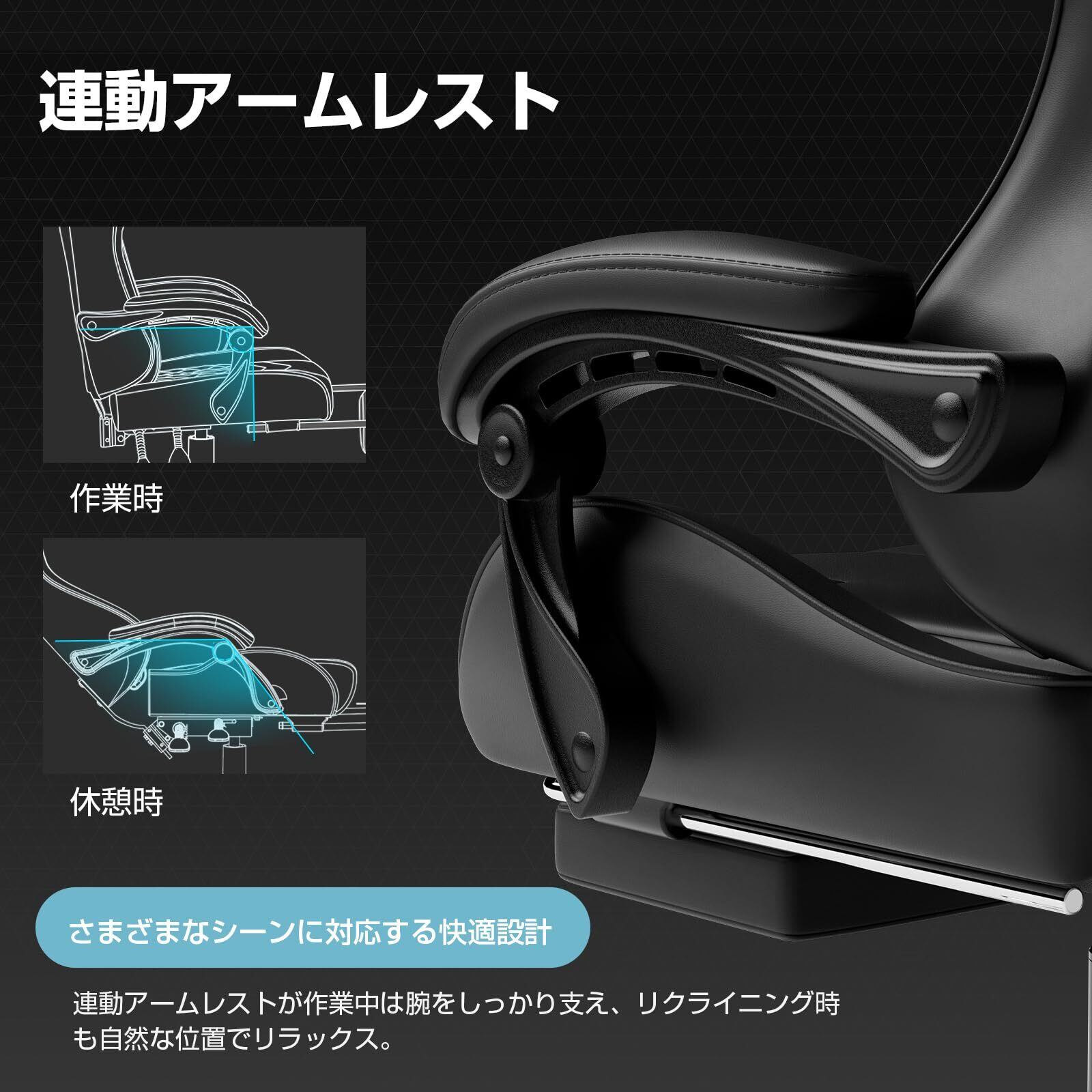 ✨ひじ掛けは高さ調整が可能で、体格やデスク環境に合わせて最適な位置に設定できます。これにより、腕への負担を軽減し、快適な作業やゲームプレイをサポートします。