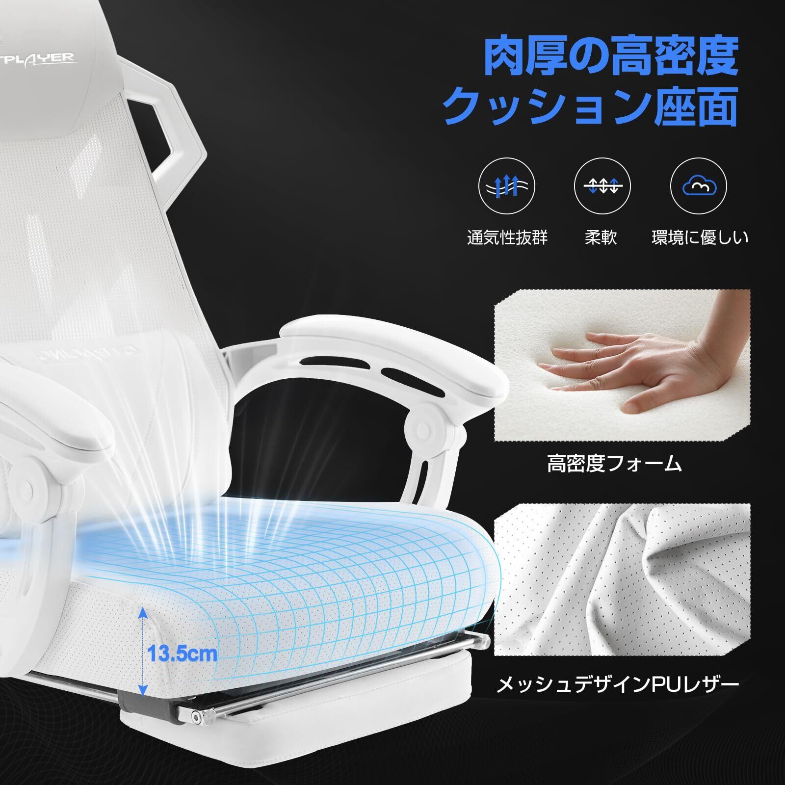GTPLYER ゲーミングチェア 真っ白 疲れない PC デスク パソコン 椅子 オットマン付き テレワーク リクライニング ハイバック オフィスイス『仕事用ゲーミングチェア』ゲーム用 フットレスト ハイバック/気孔付き皮革とメッシュ素材/連動型アームレスト