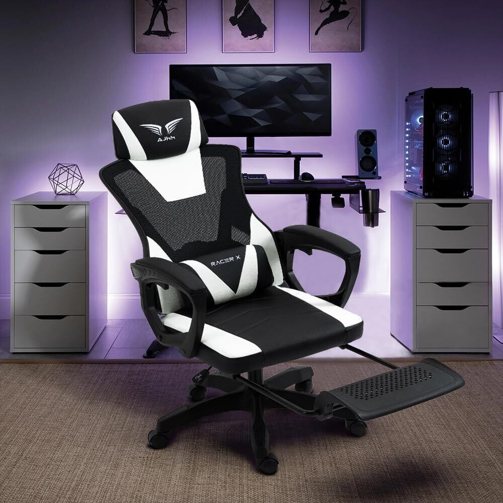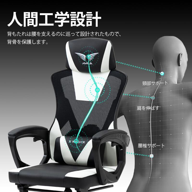 \【◆ゲーミングチェア メッシュ素材 げーみんぐチェア 通気性 リクライニング機能 オフィスチェア 135°ゲームチェア 高級PUレザー オットマン付き】/快適なゲームプレイと仕事をサポートする理想のパートナー!