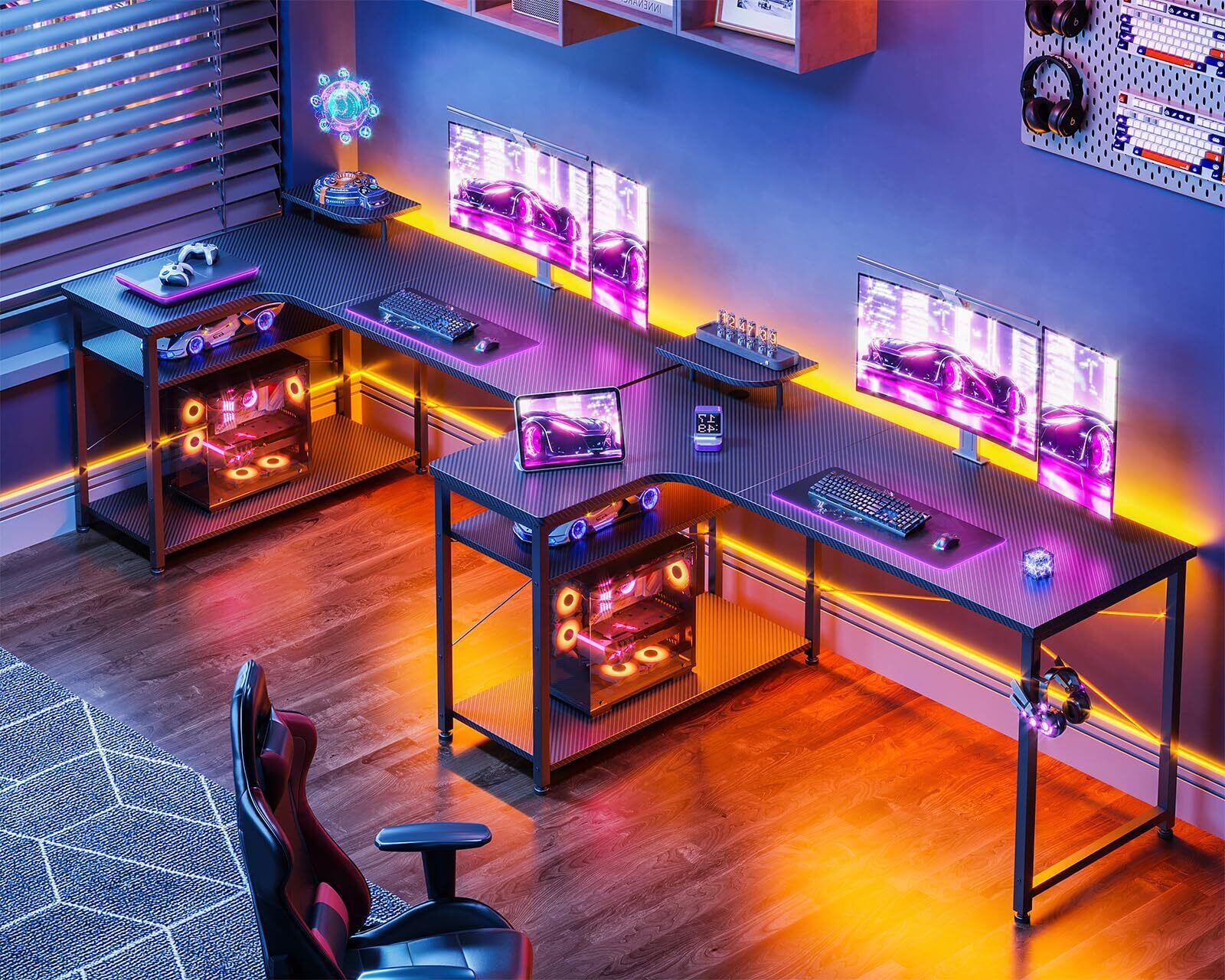 ✨左側のラックには、本棚としてや、ゲーミングアイテムの収納にも便利です。デスク周りをスッキリ整理し、必要なアイテムをすぐ手に入れられる機能的なデザインです。