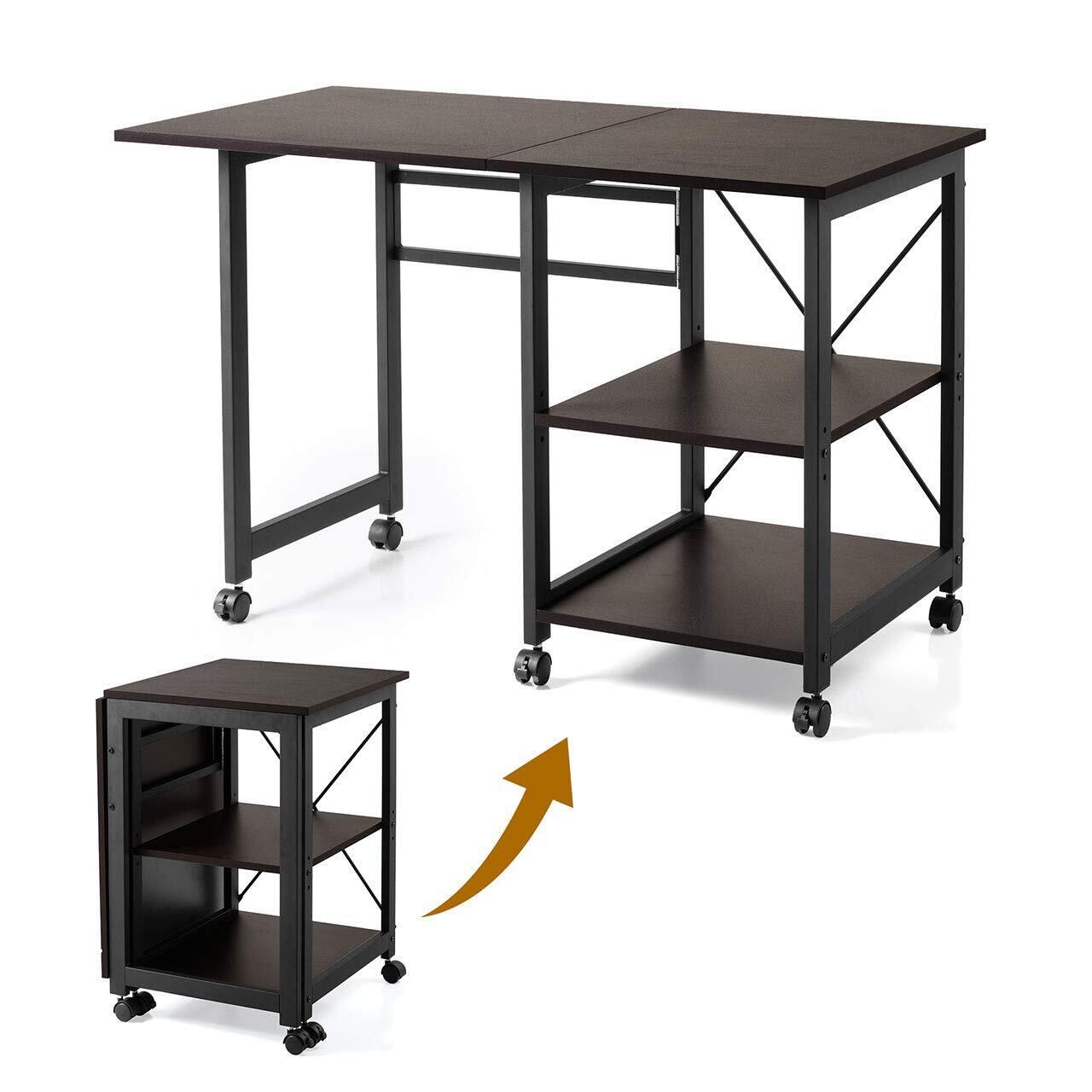サンワダイレクト 折りたたみデスク 作業台 キャスター付き 幅107×奥行55cm 耐荷重40kg 収納棚付き 中棚3段階高さ調整 ブラウン 100-DESKN006M