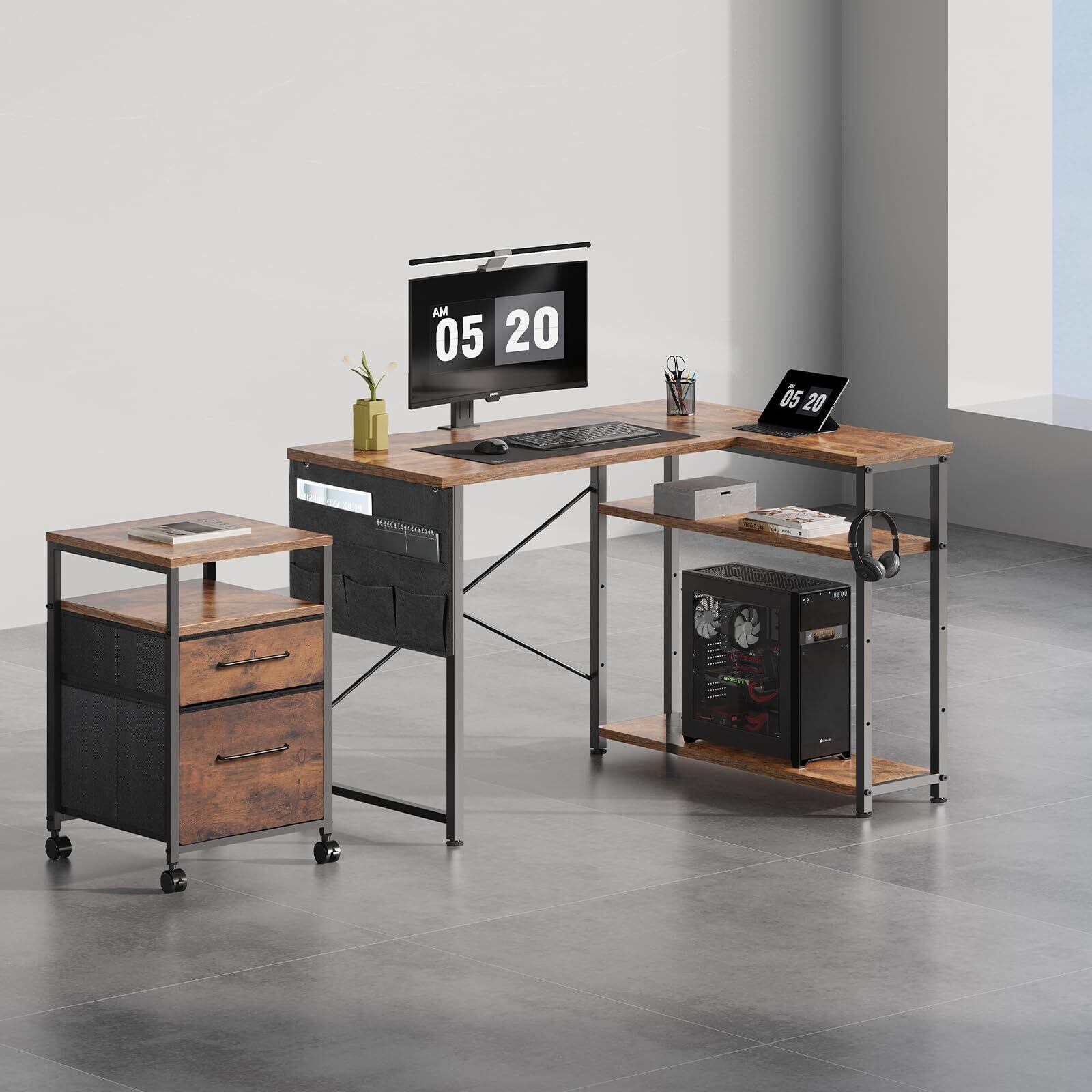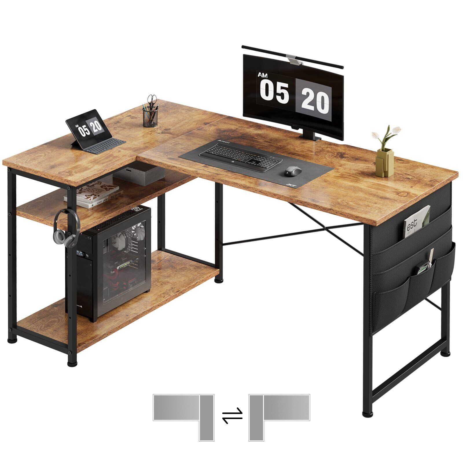 Maihail l字デスク 机 pcデスク 学習机 勉強机 パソコンデスク 右棚左棚 幅99cm コーナーデスク つくえ 棚板高さ調節可能 作業机 L字型 リモートワーク ラック付き ピンテージ