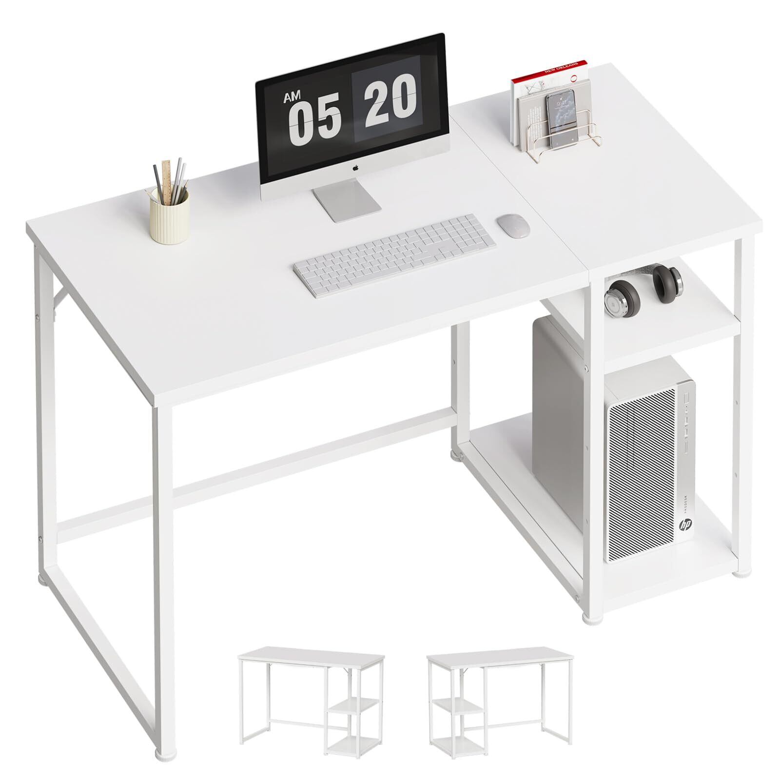 Maihail パソコンデスク 机 pcデスク 勉強机 ゲーミングデスク 白 ワークデスク テーブル 一人暮らし 家具 パソコンラック table 学習机 収納ローテーブル 100 ラック付きデスク 幅100*奥行48cm 白い SZ121BS スチールウッド簡易棚付きデスク ホワイト