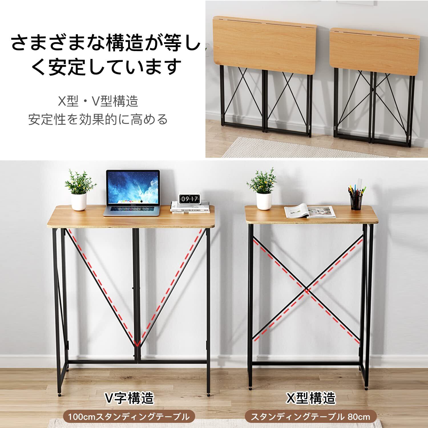 折りたたみデスク(スタンディングデスク)幅80×奥行40×高さ110cmPCデスク在宅勤務パソコンデスク (オーク)