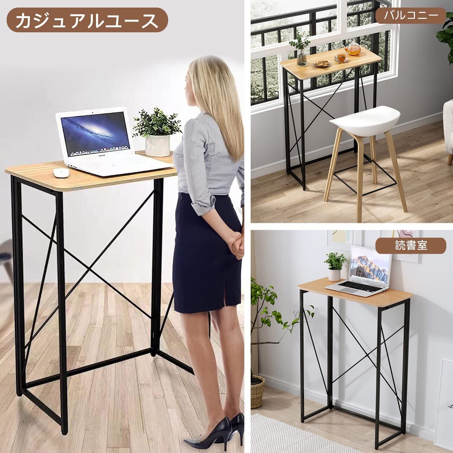 【多用途折りたたみデスク(スタンディングデスク)】スタンディング オフィス デスクは姿勢を改善し、背中と首の痛みを軽減し、より健康的な作業姿勢を提供します。デスクトップは広々としたデスクトップに本、書類、ラップトップを置くことができます。リビングルーム、ベッドルーム、オフィスに最適。自宅のパソコンデスク、ライティングデスク、スタディデスク、シングルダイニングテーブルなどとして使用できます。
