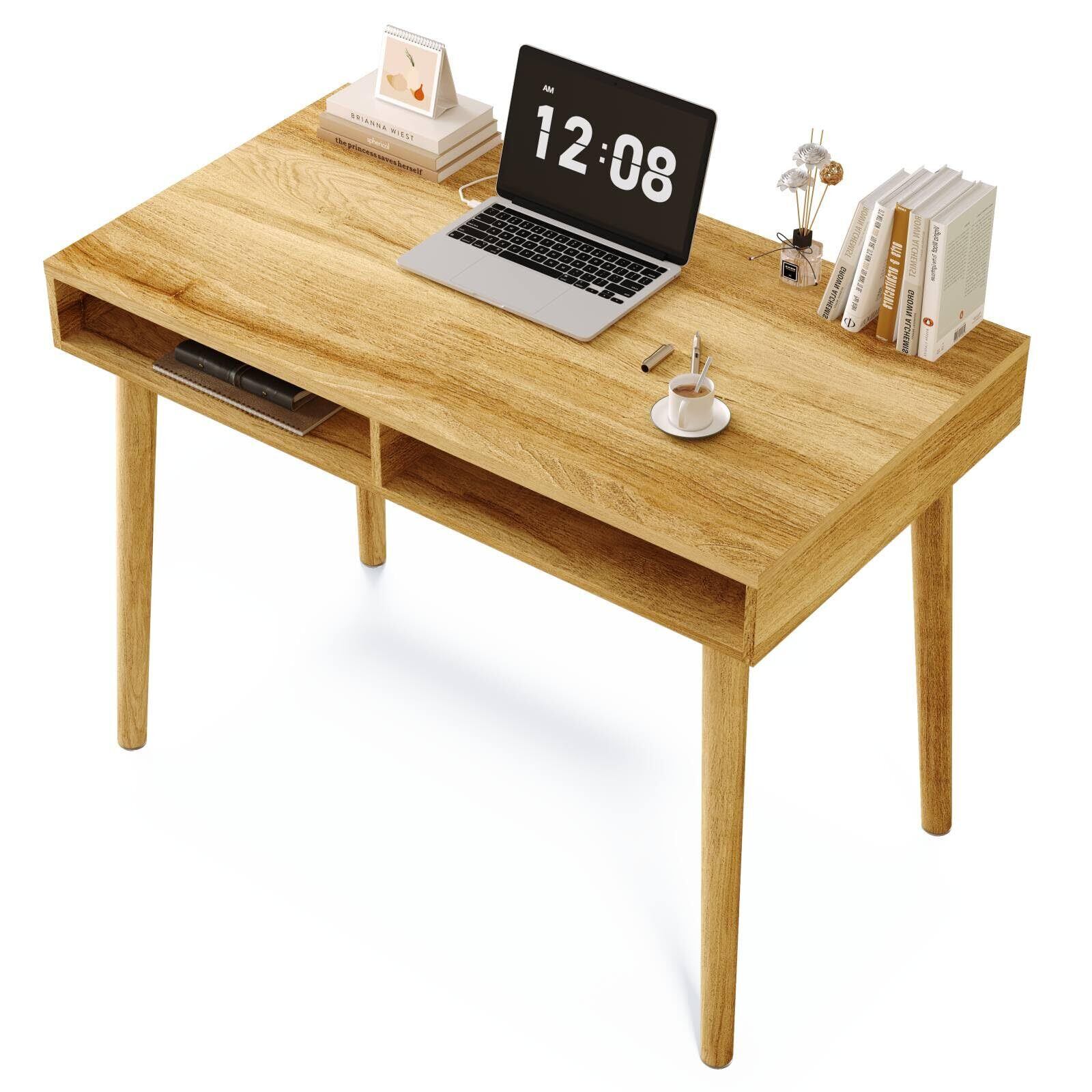 ZXD デスク パソコンデスク 勉強机 木製 机 幅80cm PCデスク 在宅勤務 リモートワーク用 2段収納 あさい胡桃色