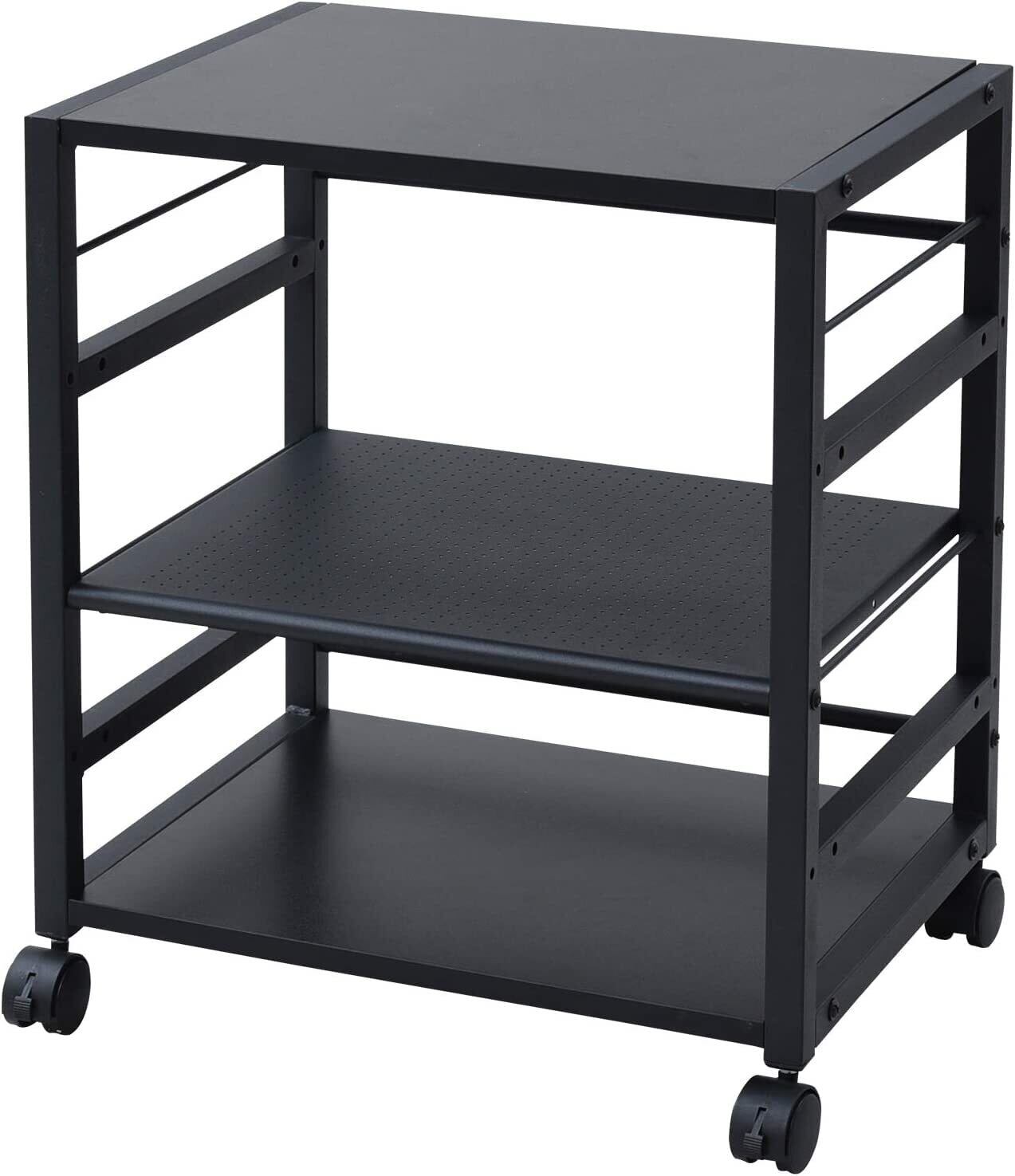 山善(YAMAZEN) デスク サイドワゴン 幅53×奥行40×高さ63cm A4対応 キャスター付き 天板・棚板高さ調節可能 組立品 ブラック/ブラック NNGS-3R(BK/SBK) 在宅勤務