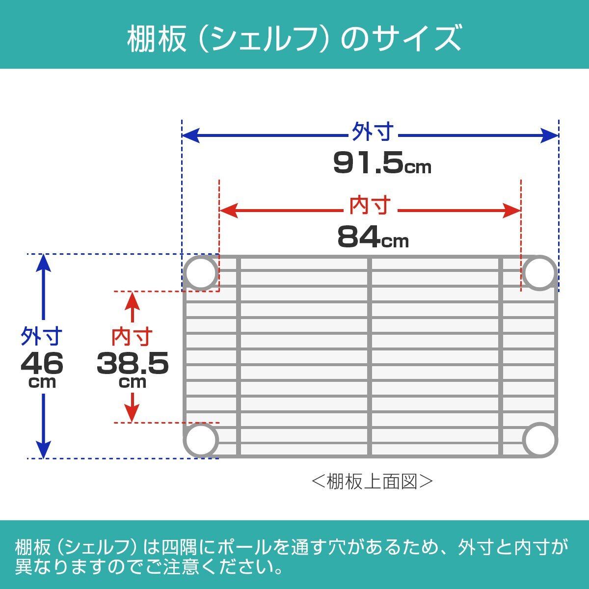 ✨幅91.5×奥行46cmの大きな棚板は、幅広い収納が可能。大型の機器や家具、日用品なども楽々と置くことができ、効率的な収納を実現します。
