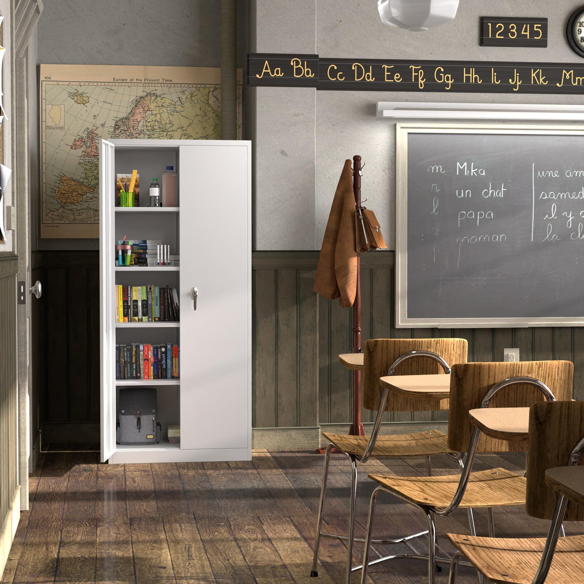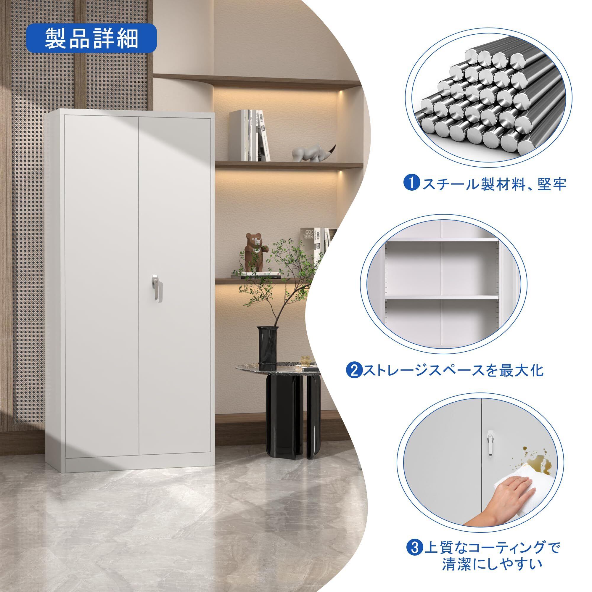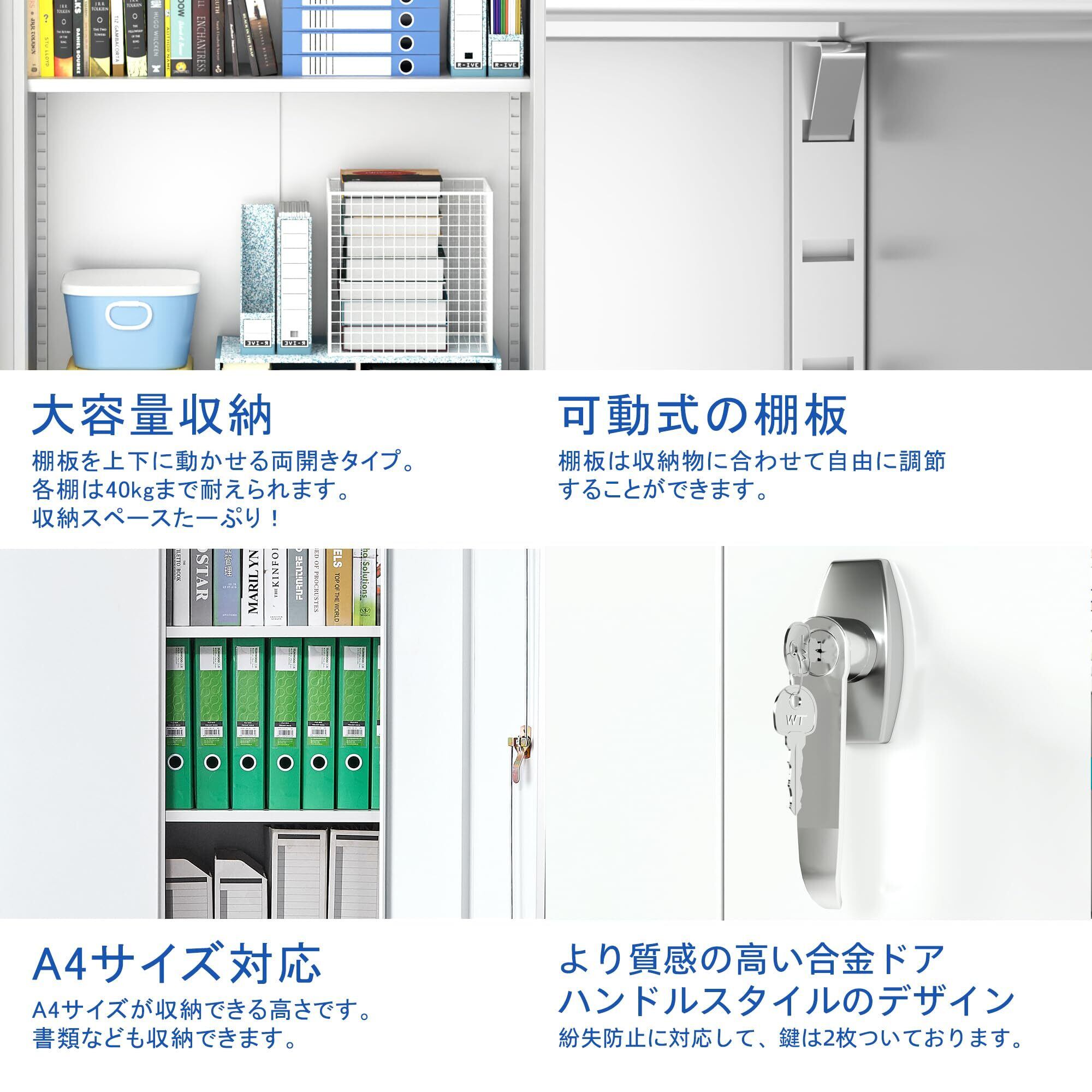 【大容量収納】棚板を上下に動かせる両開きタイプのスチールロッカー、各棚は40kgまで耐えられます。オフィスの書類や家庭用品、必要なだけアイテムを収納するためにお客様のニーズを満たします。