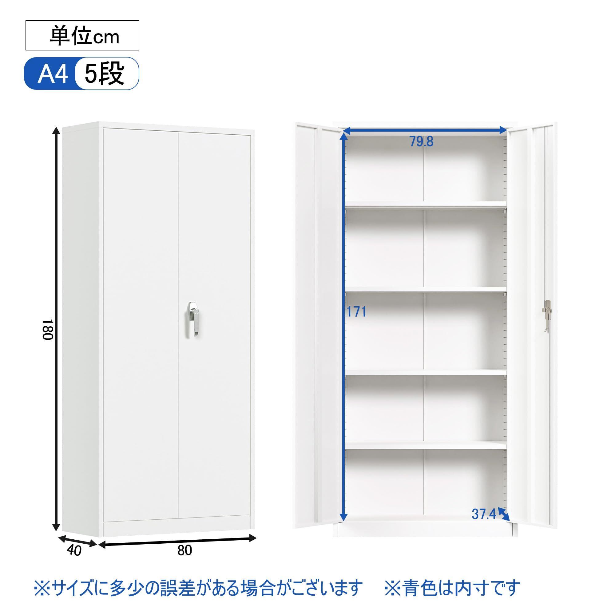GangMeiスチールロッカー スチール書庫 鍵付き棚 オフィス キャビネット 5段 両開き 鍵付きキャビネット 幅80×奥行40×高さ180cm 組み立て必要ホワイト