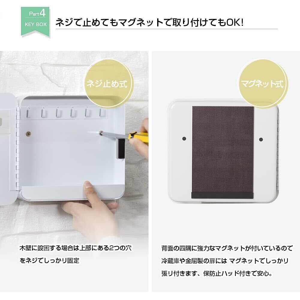 八番屋 キーボックス マグネット 玄関 ドア 鍵 収納 約W17×D4×H17cm ホワイト