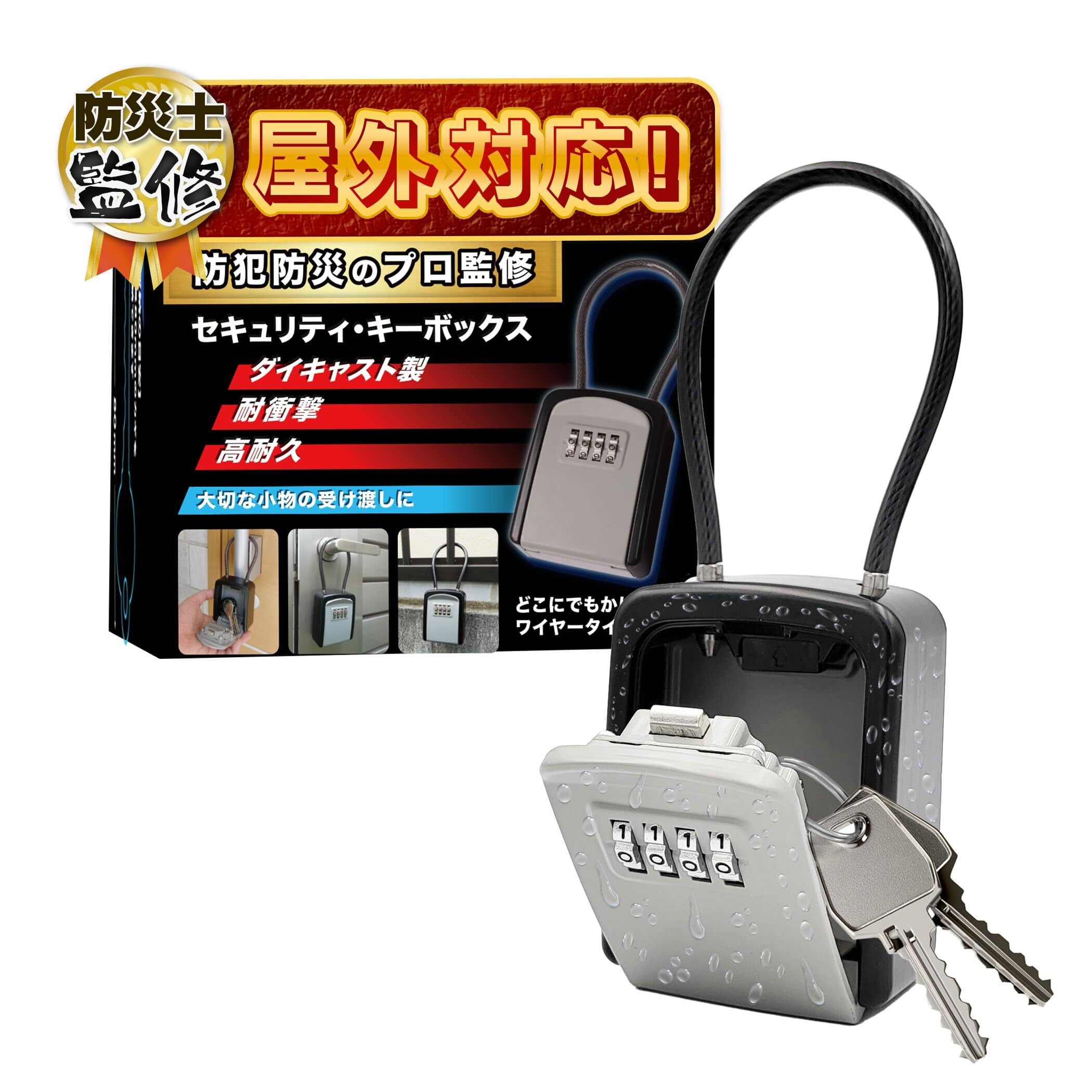 \【◆プロ監修 セキュリティキーボックス ワイヤー 4桁 ダイヤル式】【屋外・屋内兼用】【防犯・盗難防止】/鍵管理をスマートに実現するアイテム!