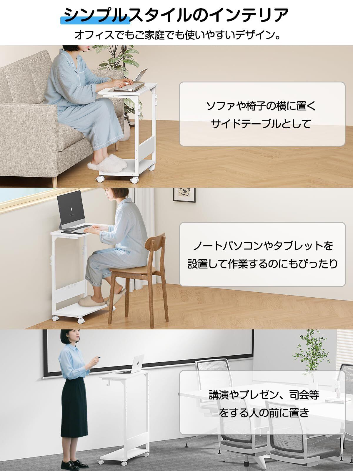 \【◆TTWO サイドテーブル 昇降式 キャスター付き】【パソコンワゴン】【多機能 おしゃれ】/快適なワークスペースを実現するアイテム!